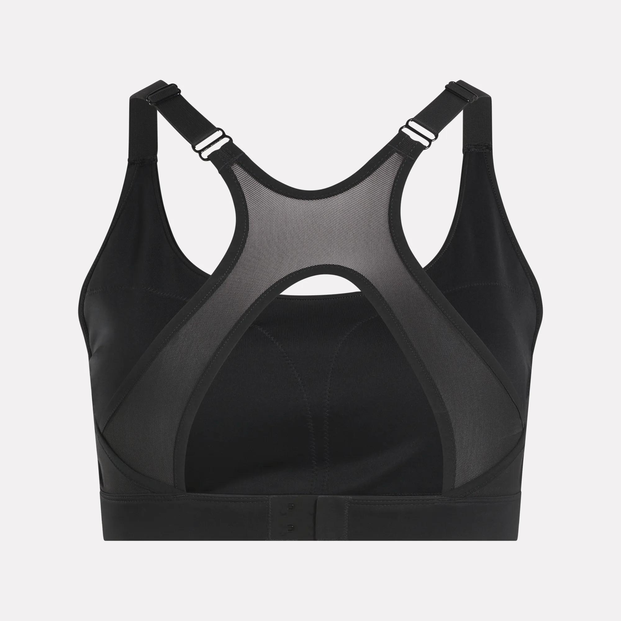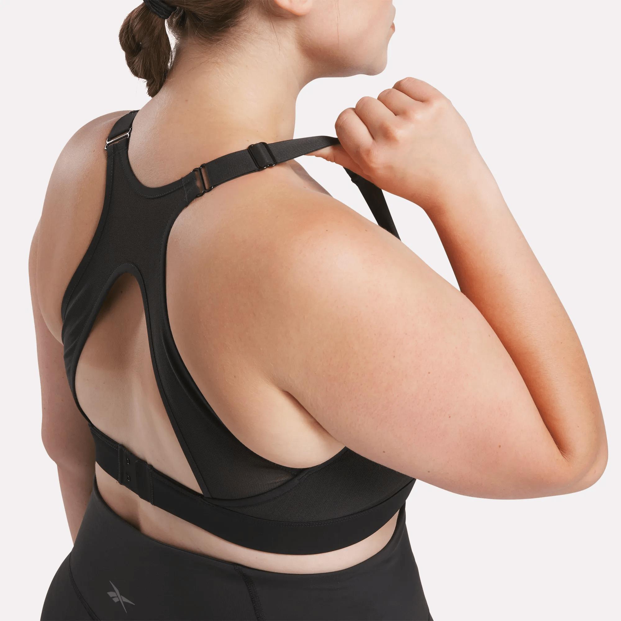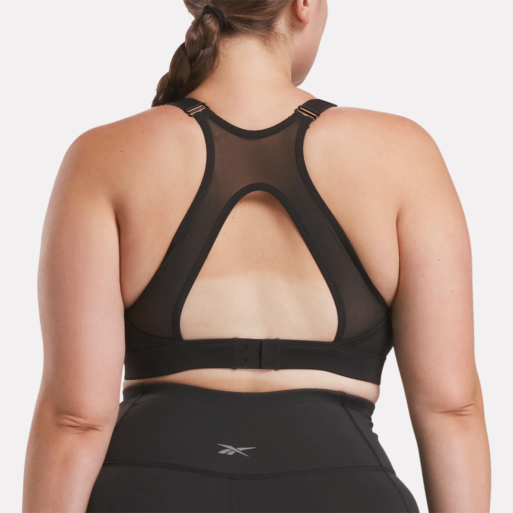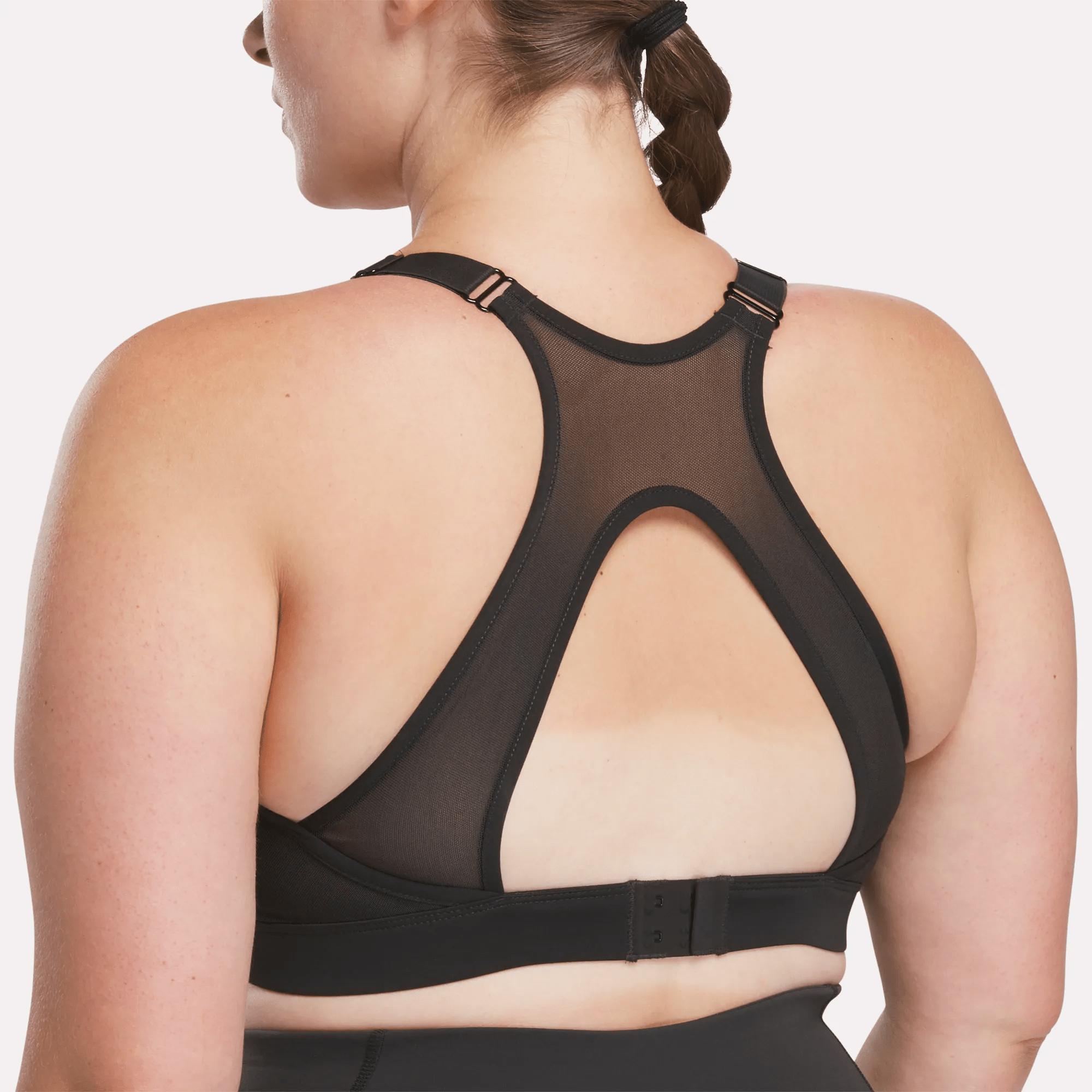 A high-support bra made for high impact activitiesBe prepared for all levels of training in this Reebok Lux high-impact bra. This snug-fitting silhouette is built in our recycled Lux Bold fabric with adjustable straps and secure clasp back closure to customize your fit. The power mesh racer back detail and angled side seams provide breathability while giving you that secure held-in feel.