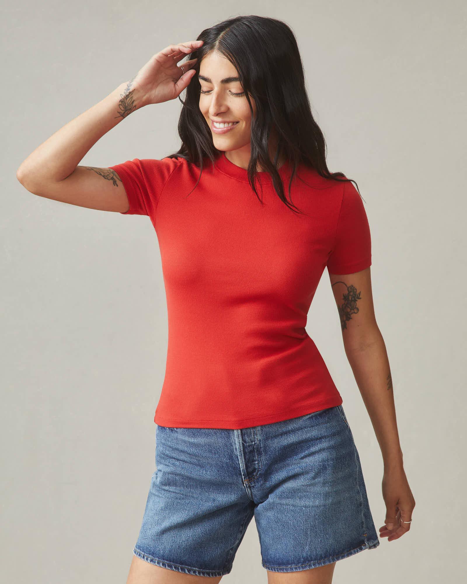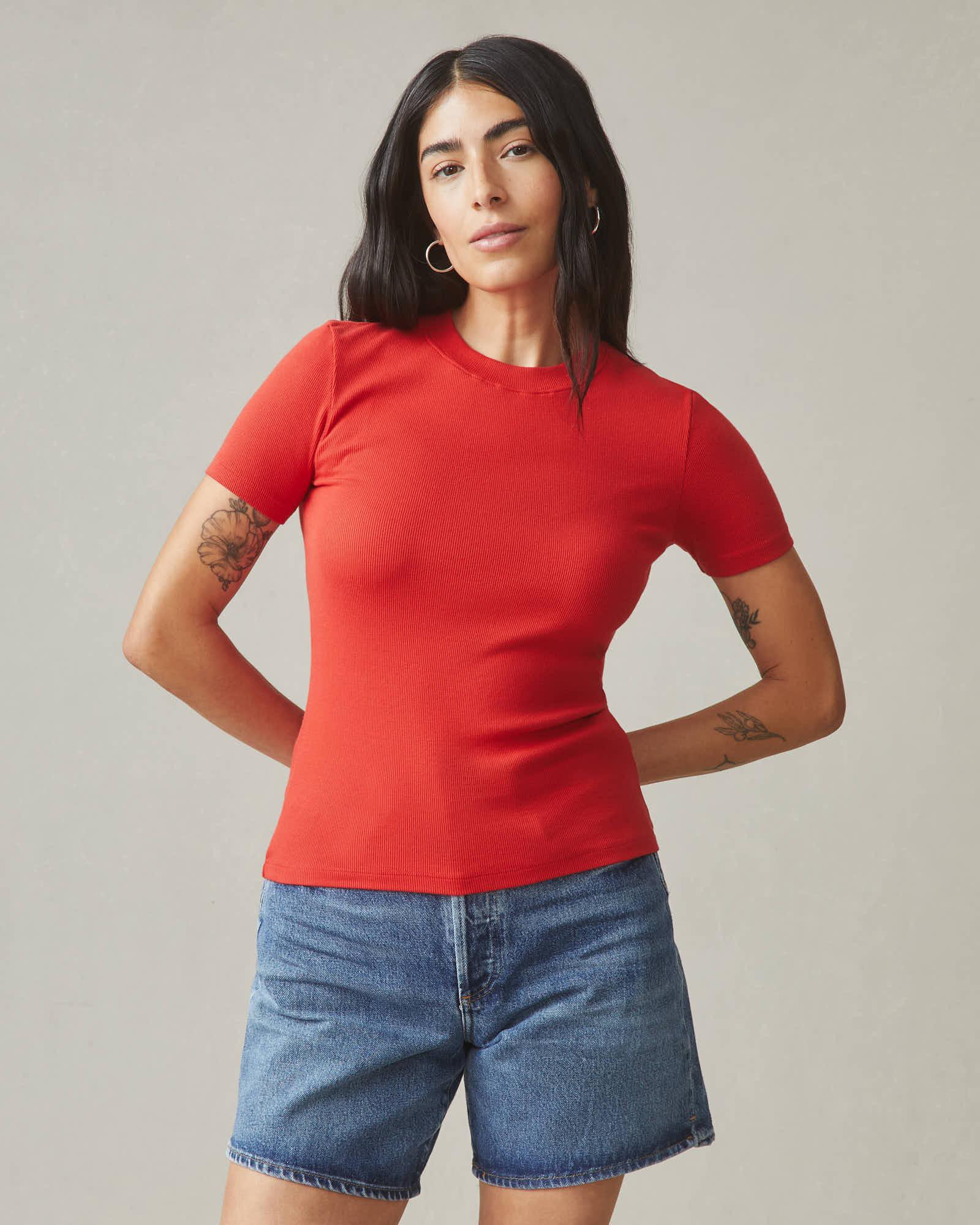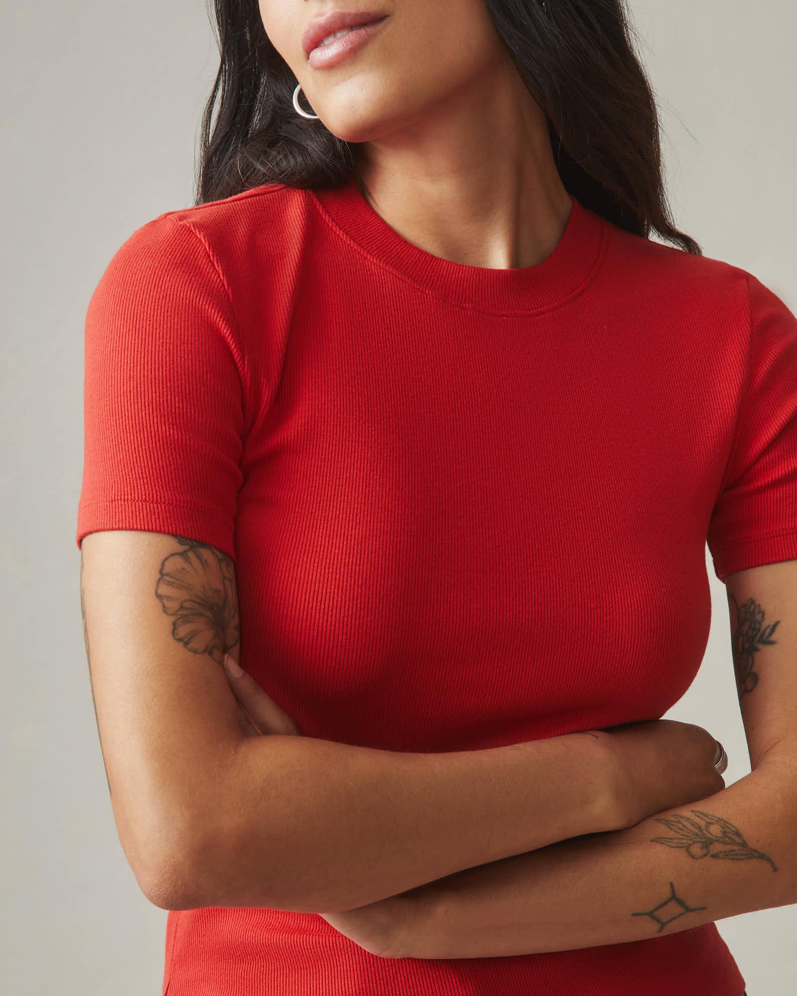 Women's Luxe Rib Crew Tee - Crimson Female