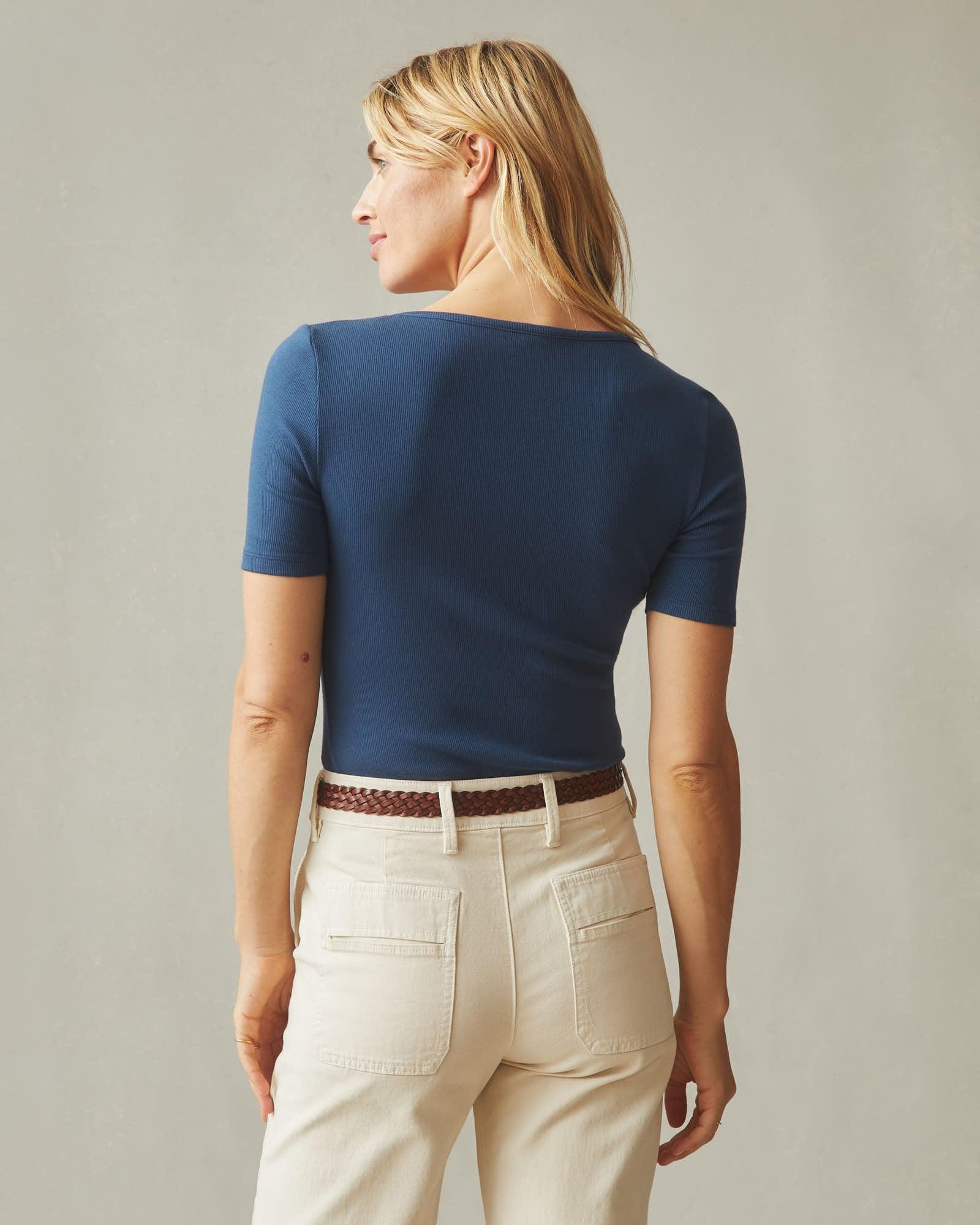 Women's Luxe Rib Square Neck Tee - Marine Navy