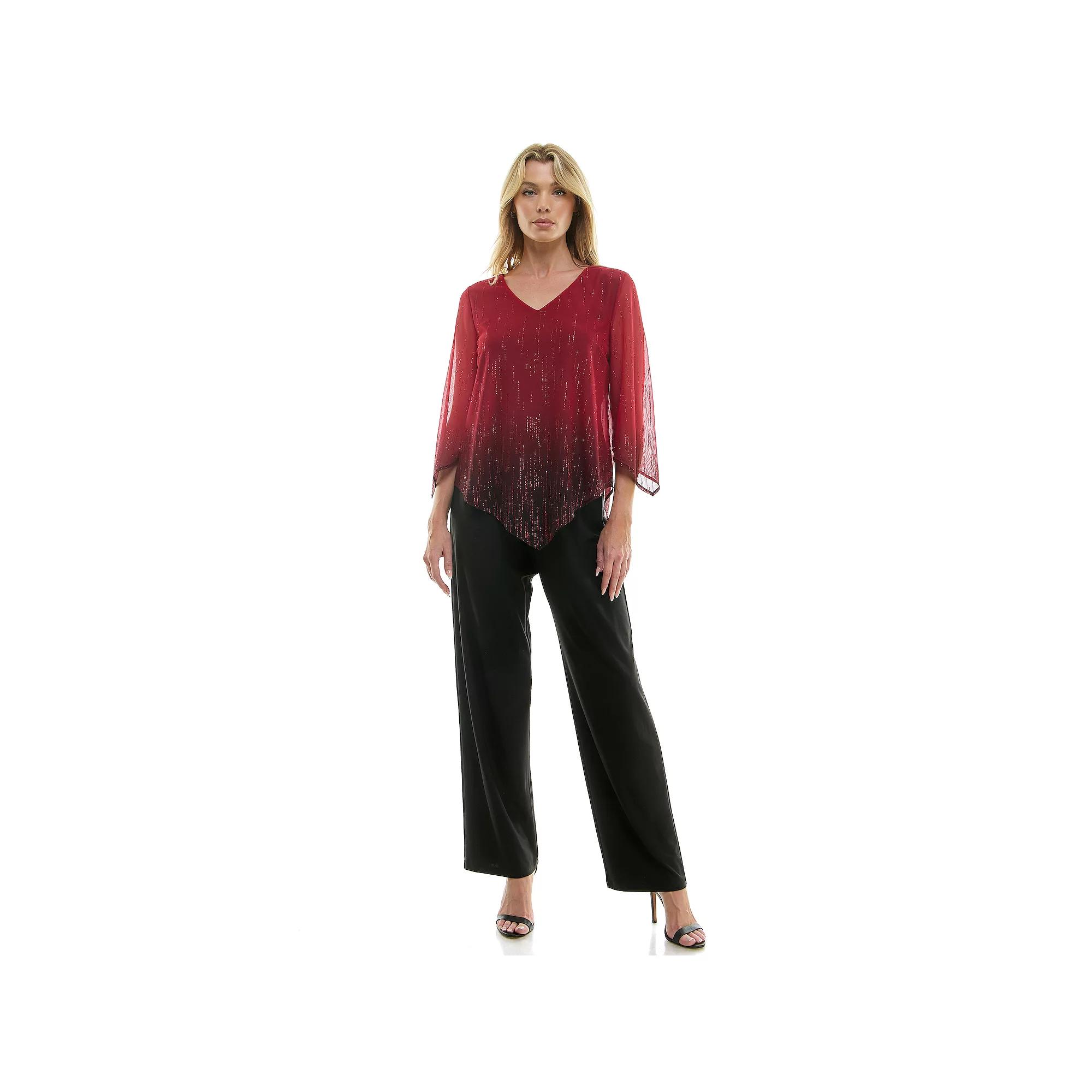 Refresh your wardrobe with this womens Luxology 2-piece v-neck blouse & straight leg pants set. Click on this WOMENS GUIDE to find the perfect fit and more! Refresh your wardrobe with this womens Luxology 2-piece v-neck blouse & straight leg pants set. Click on this WOMENS GUIDE to find the perfect fit and more! FEATURES 2-piece set includes: blouse & pants Straight cut Straight hem Blouse: 3/4-length trim sleeves, v-neck Pants: elastic waistbandFIT & SIZING Relaxed fit 43-in. length Midrise sits on the high hip Relaxed fit through the hip and thigh Straight leg openingFABRIC & CARE Polyester Machine wash and line dry Imported Size: Large. Color: Red Black Red. Gender: female. Age Group: adult.
