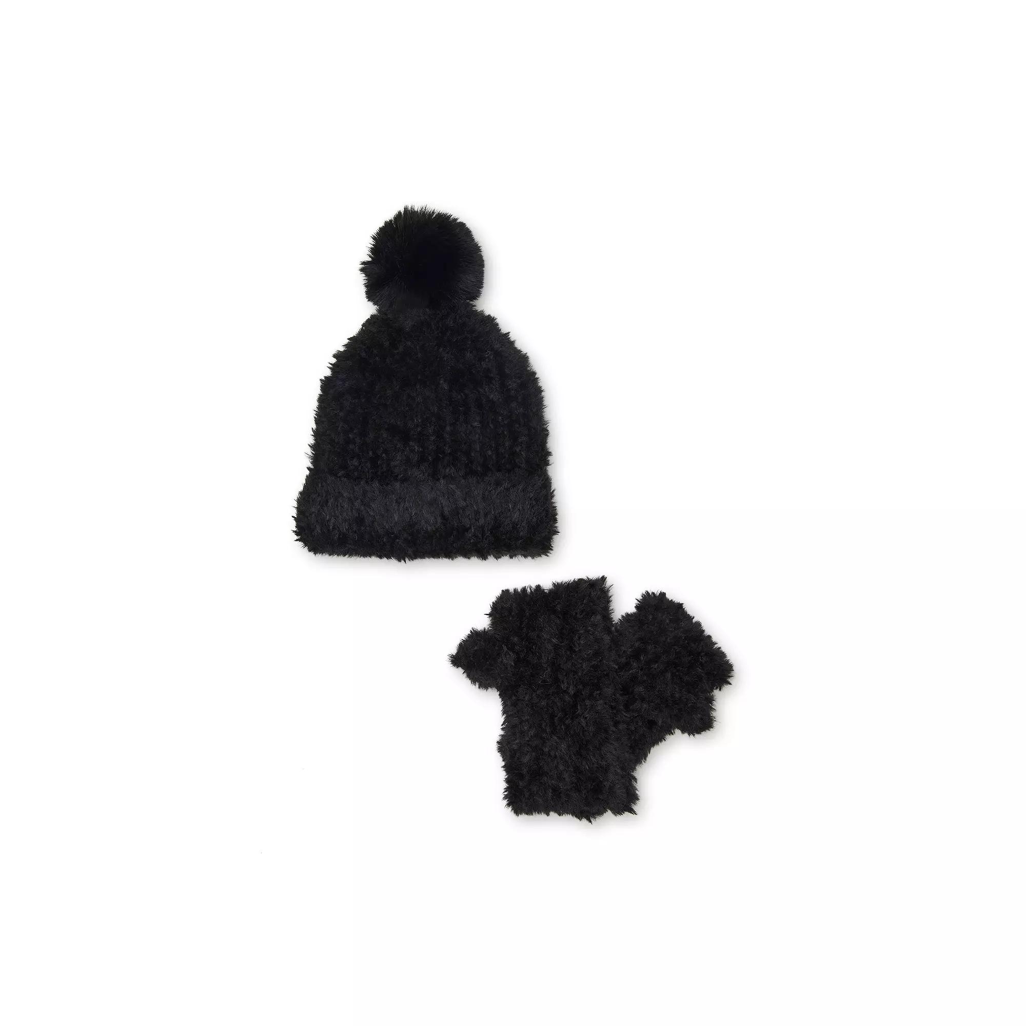 Cozy up for chilly days with this delightful beanie and handwarmer set from madden girl, designed to add warmth and style to any outfit. The fluffy texture and playful pom-pom detail make it the perfect gift for fashion-forward girls who love to stay snug and trendy during winter outings. How do you accessorize? Check out our ACCESSORIES GUIDE for essential tips to elevate your style with must-have accessories. - https://www.kohls.com/feature/accessories-guide.jsp. FEATURES: Matching, cozy design, Comes in gift box. FIT & SIZE: One size fits most, Beanie: 8.5" x 8.5", Hand warmers: 7" x 3.5". DETAILS: 2-piece set includes: beanie and pair of handwarmers, Imported. MATERIAL & CARE: Polyester, Faux fur construction, Hand wash. Color: Black. Gender: female. Age Group: kids. Material: ACRYLIC BLEND.