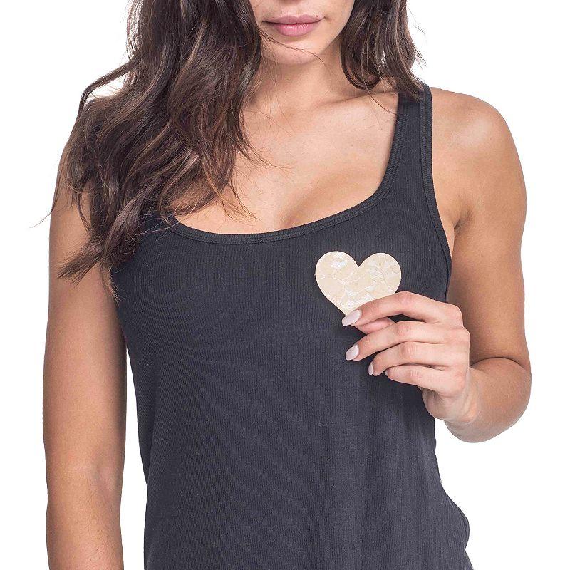 Maidenform heart shaped nipple covers are fun and discrete.Self adhesiveDisposableIncludes: 1 pair of satin and 1 pair of lace petals, and are self-adhesive and disposable.FIT & SIZINGOne size fits mostFABRIC & CAREPolyesterOne time useImported Color: Med Beige. Gender: female. Age Group: adult.