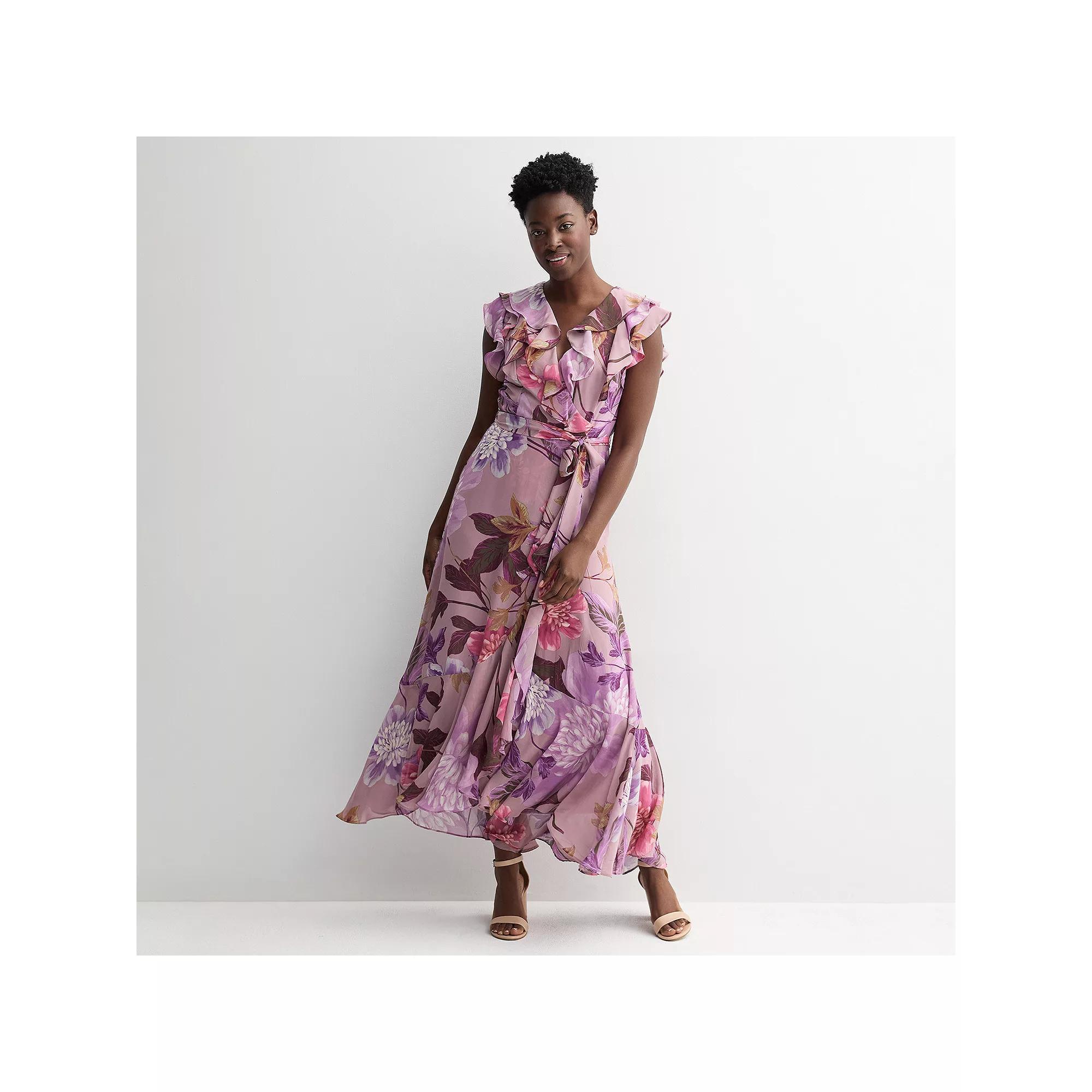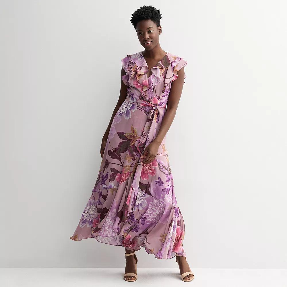 Elevate your wardrobe with this enchanting floral ruffle wrap dress from Maison Tara, perfect for any occasion. Its graceful silhouette drapes effortlessly, allowing you to dress up for an elegant evening or down for a relaxed day out, all while showcasing your unique style. Click on this WOMEN'S GUIDE to find the perfect fit and more! - https://www.kohls.com/feature/womens-fit-guide.jsp. FEATURES: Faux-wrap silhouette, Woven chiffon construction, Ruffled hem, Zipper closure, Cap, flutter sleeves, Coordinating sash, Fully lined, Surplice neckline. FIT & SIZING: Long flowy skirt, 57 1/2-in. length from shoulder to hem, Maxi length hits at the ankle, Back-elastic waistband. FABRIC & CARE: Polyester, Polyester lining, Hand wash, Imported. Size: 6. Color: Mauve Floral. Gender: female. Age Group: adult.