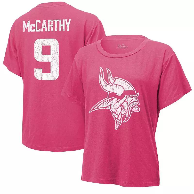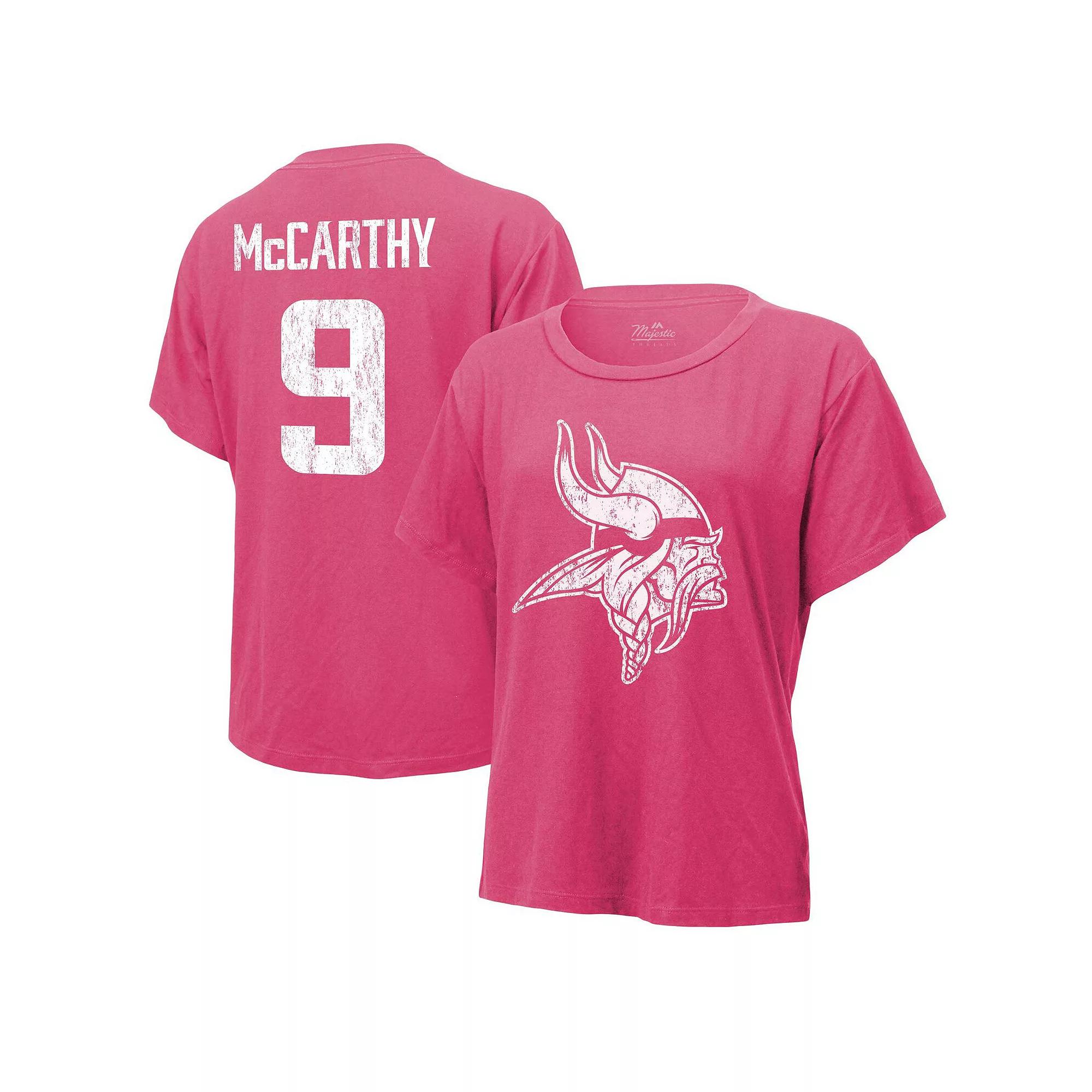 Cheer on J.J. McCarthy and the Minnesota Vikings with this stylish Name & Number T-Shirt from Majestic Threads. The distressed screen print team logo on the front adds a touch of vintage flair to this tee. Plus, with J.J. McCarthys name and number displayed on the back, your Vikings fandom and support for their star quarterback will be unmistakable.Cheer on J.J. McCarthy and the Minnesota Vikings with this stylish Name & Number T-Shirt from Majestic Threads. The distressed screen print team logo on the front adds a touch of vintage flair to this tee. Plus, with J.J. McCarthys name and number displayed on the back, your Vikings fandom and support for their star quarterback will be unmistakable.PRODUCT FEATURESOfficially licensedBrand: Majestic ThreadsDistressed screen print team logo on front and name, number on backCrew neckMachine wash, tumble dry lowMaterial: 95% Rayon/5% SpandexCrew neck provides a traditional look and is comfortable to wear all dayShort sleeve Size: 2X. Color: Pink. Gender: female. Age Group: adult. Material: Cotton.
