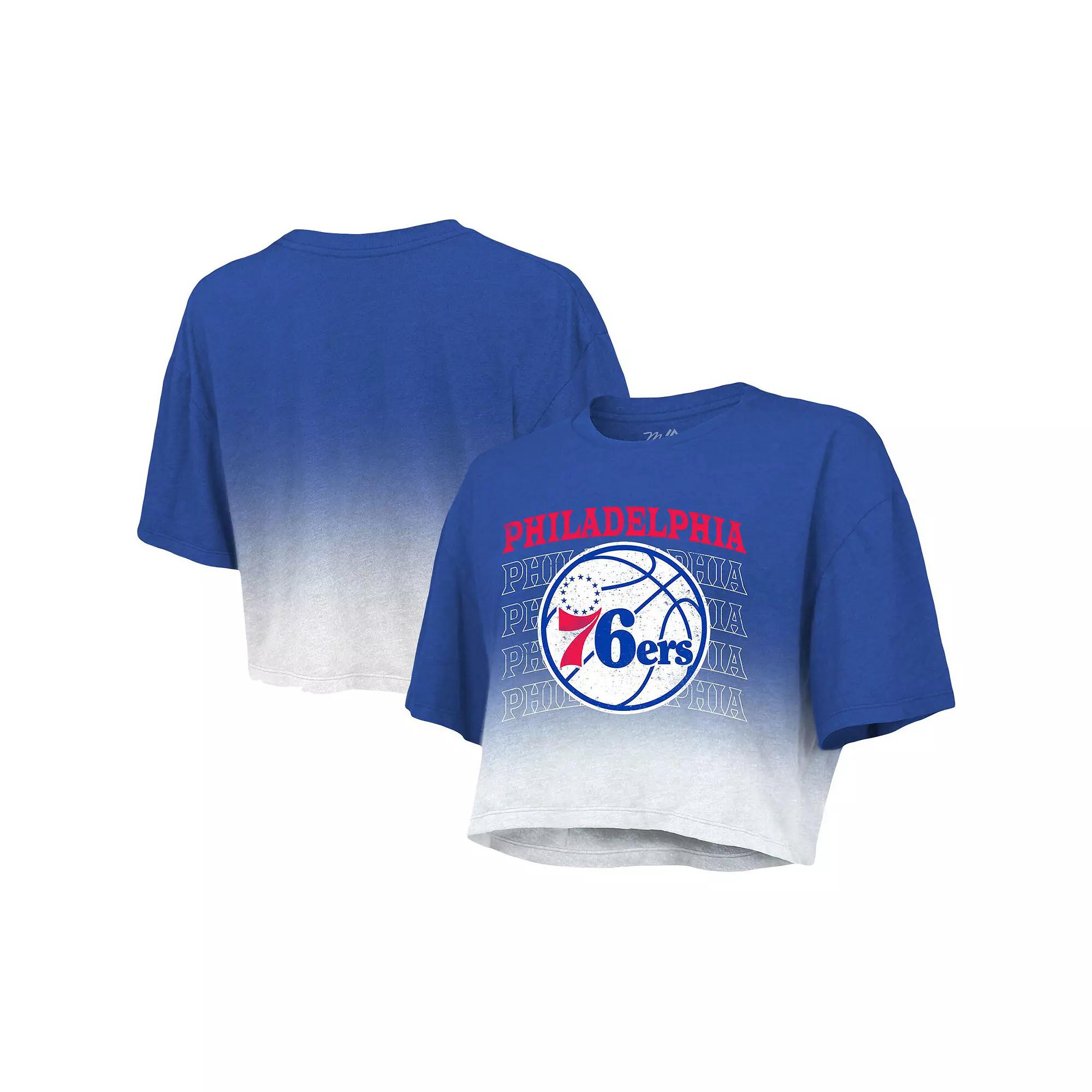 When you wear this Majestic Threads Repeat cropped T-shirt at the next Philadelphia 76ers game, you're sure to capture everyone's attention. It features an ombre dip-dye pattern with bold Philadelphia 76ers graphics for a fun getup. Plus, the cropped hem adds a touch of charm. Brand: Majestic Threads. Officially licensed. Machine wash, tumble dry low. Cropped. Ombre pattern varies on each T-shirt. Material: 100% Cotton. Short sleeve. Crew neck. Distressed screen print graphics. Size: 2X. Color: 76r Blue. Gender: female. Age Group: adult.