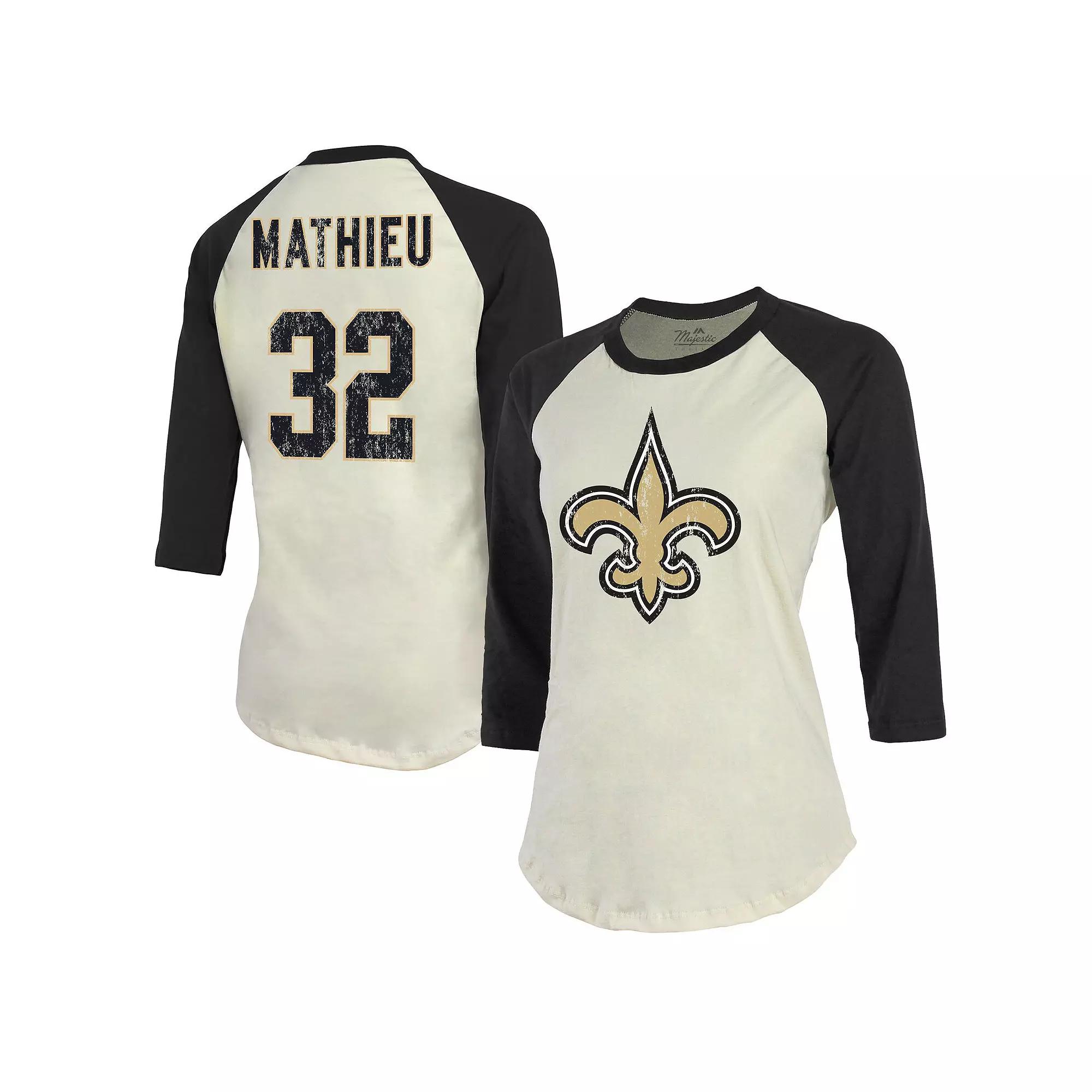 Tyrann Mathieu is your favorite player, and for good reason. Show him your support by grabbing this New Orleans Saints Name & Number Raglan 3/4 Sleeve T-Shirt from Majestic Threads. It features exciting New Orleans Saints and Tyrann Mathieu graphics, so no one will be able to question where your allegiance lies every time you rock this sweet gear.Tyrann Mathieu is your favorite player, and for good reason. Show him your support by grabbing this New Orleans Saints Name & Number Raglan 3/4 Sleeve T-Shirt from Majestic Threads. It features exciting New Orleans Saints and Tyrann Mathieu graphics, so no one will be able to question where your allegiance lies every time you rock this sweet gear.PRODUCT FEATURESBrand: Majestic ThreadsScreen print graphicsMaterial: 100% CottonMachine wash, tumble dry lowRaglan sleevesOfficially licensed3/4 Length sleeve Color: Beige Over. Gender: female. Age Group: adult.