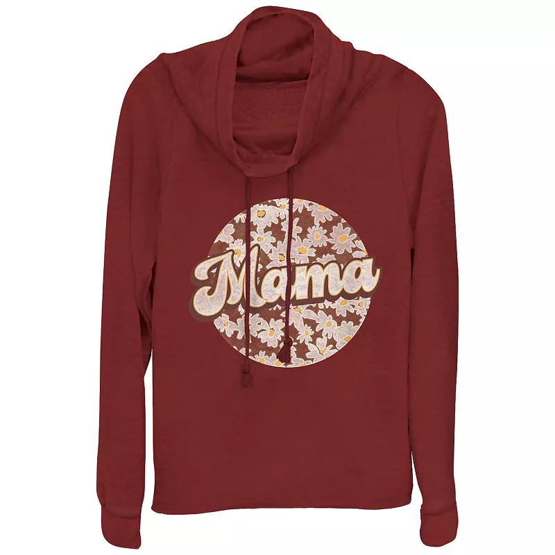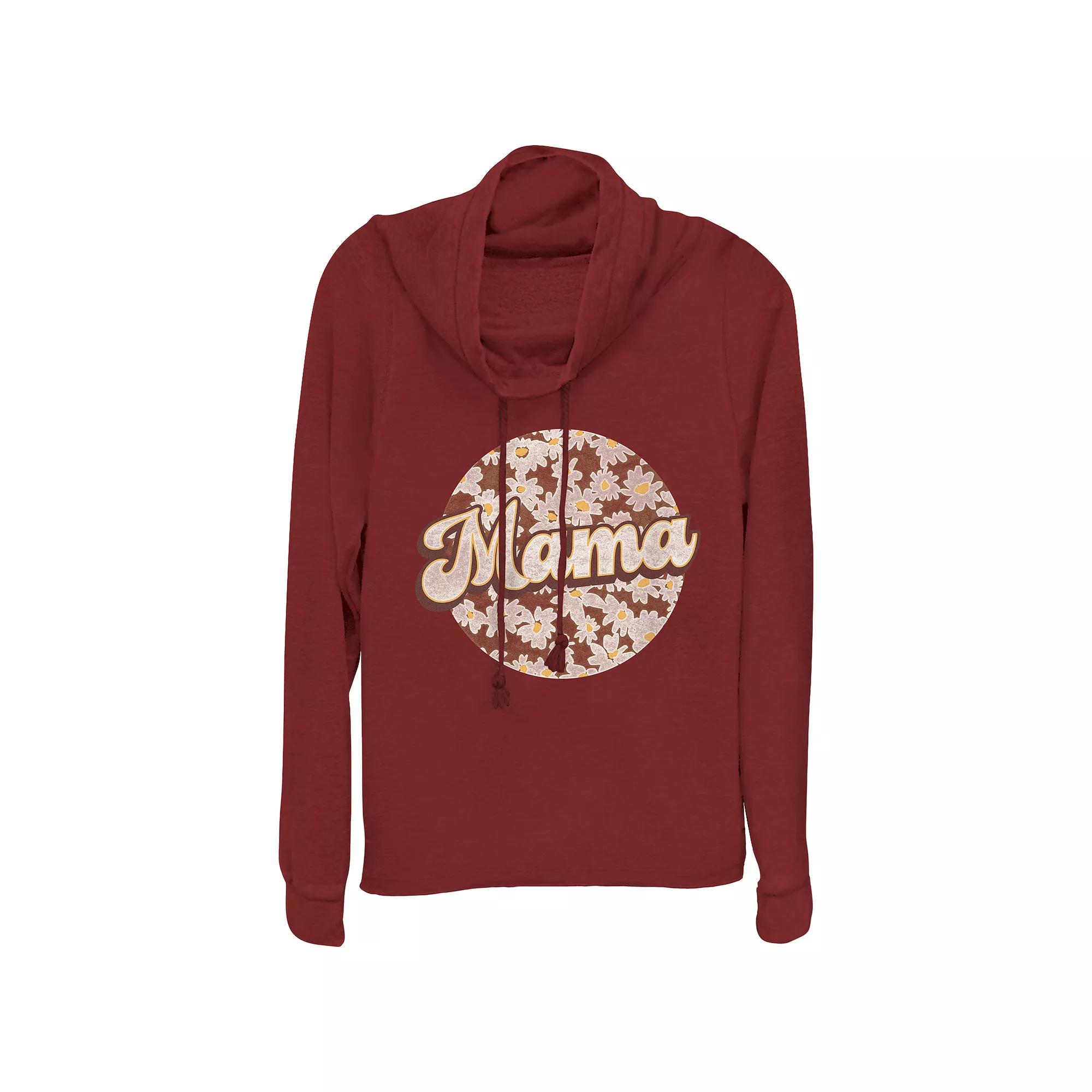 Women's Mama Flower Print Cowlneck Graphic Lightweight Long Sleeve,