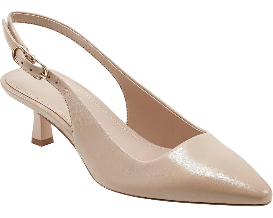 Showcase luxurious refinement in your modest look wearing the Marc Fisher LTD™ Mlkory Pumps. The low-top footwear features a buckle adjustable slingback strap closure with pointed toe silhouette and stylish tapered kitten heel for a sleek look.