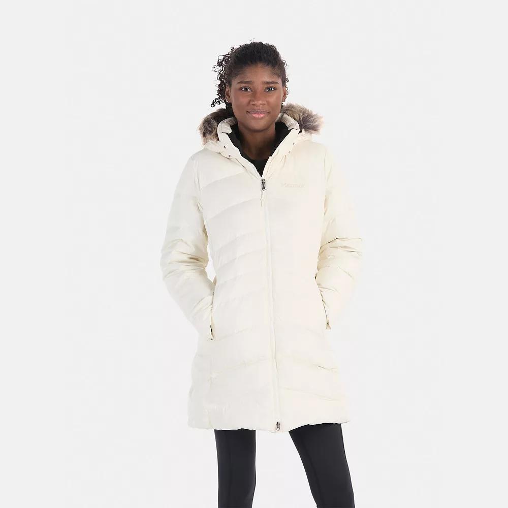 Beat the winter cold while looking great with the womens Montreal faux fur trimmed removable hood down parka from Marmot.Click on this WOMENS GUIDE to find the perfect fit and more! Beat the winter cold while looking great with the womens Montreal faux fur trimmed removable hood down parka from Marmot. Click on this WOMENS GUIDE to find the perfect fit and more! FEATURES Zip-off hood with removable faux-fur trim Zipper front closure Long sleeves with micro fleece interior cuffs for comfort 2 micro fleece lined zip handwarmer pockets at front, 2 interior pockets Plush fleece lined torso adds warmth Stylish, long down coat with chevron baffles and modern details 700 fill RDS down treated with Down Defender for lightweight warmth and an extra level of moisture protection Partially linedFIT & SIZING Regular fit 34-in. length from shoulder to hem Designed to hit above the knees HeavyweightFABRIC & CARE Body: polyester Fill: duck down, duck feather Lining: polyester Trim: acrylic, polyester Machine wash and tumble dry low Imported Size: X Large. Color: Papyrus. Gender: female. Age Group: adult.