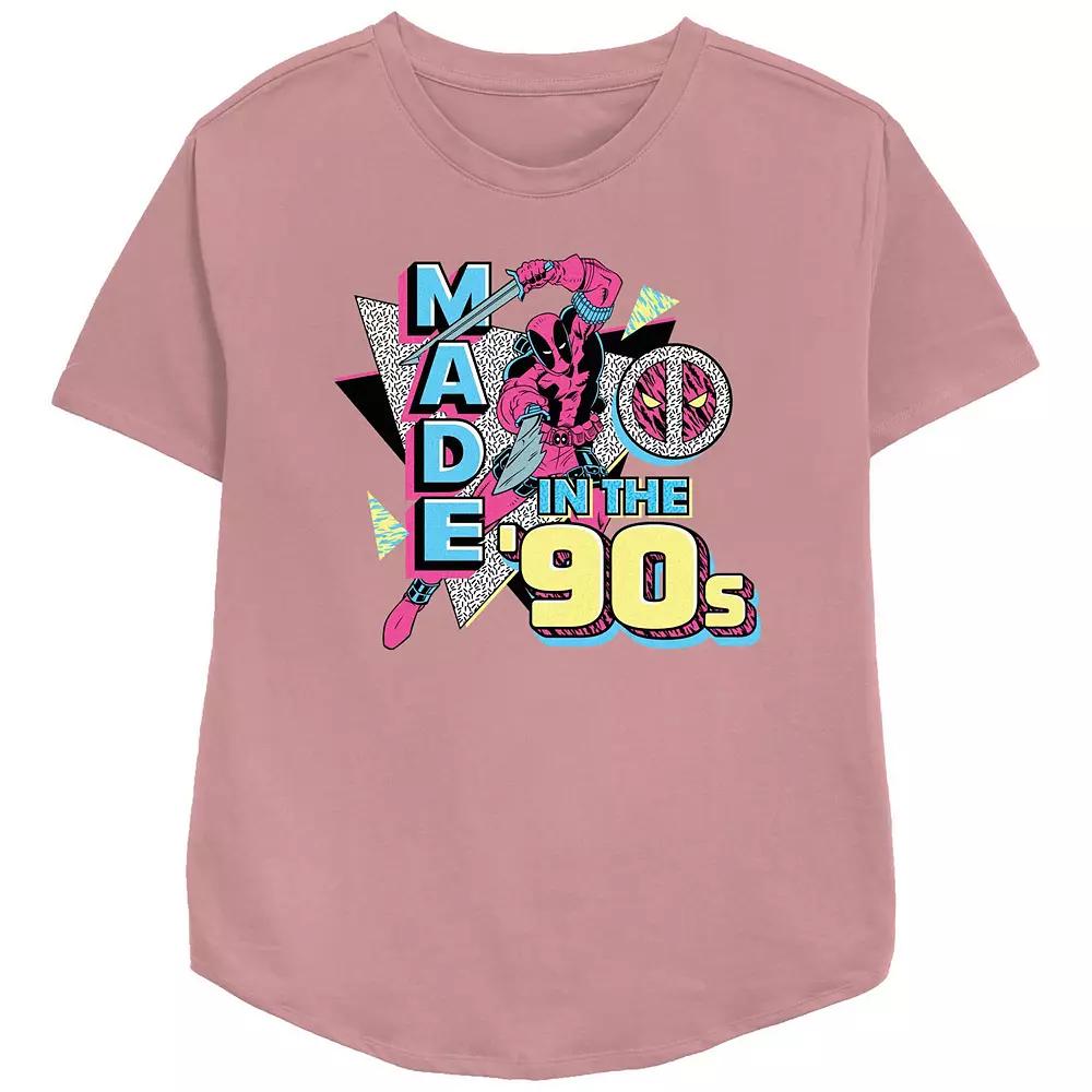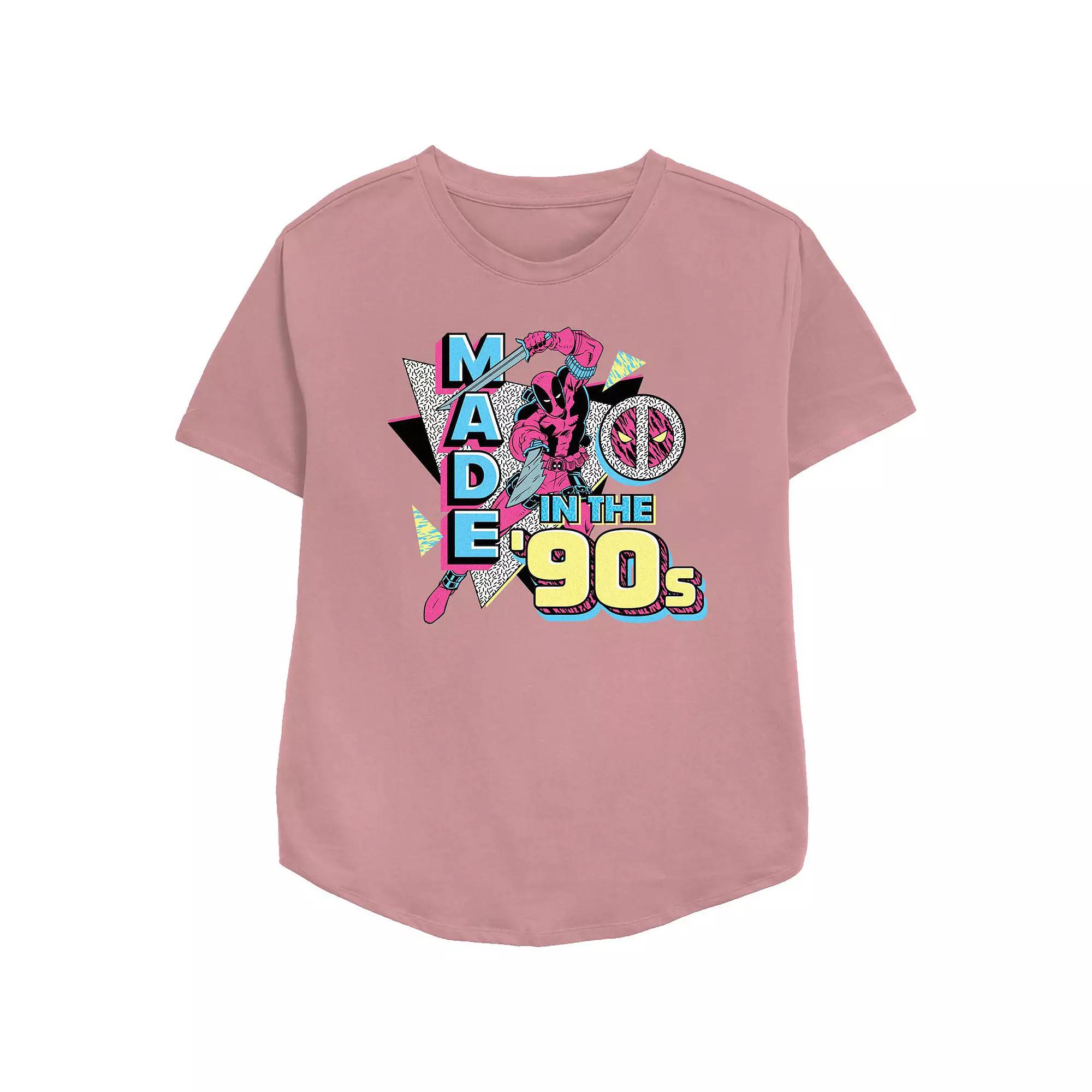Shell love the look and feel of this Womens Marvel Deadpool Made In The 90s Poster Graphic Tee. FEATURES Crewneck Short sleevesFABRIC & CARE Cotton, polyester Machine wash Imported Size: Large. Color: Mauve. Gender: female. Age Group: adult.
