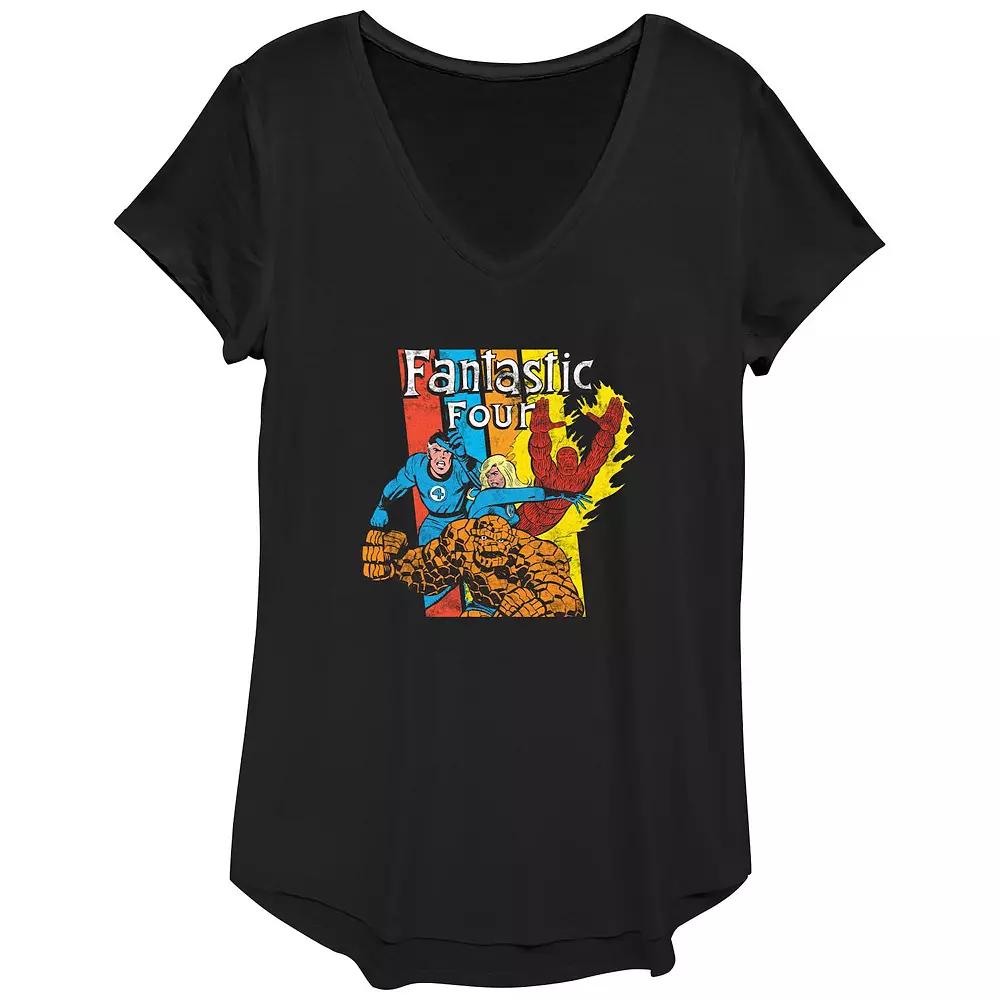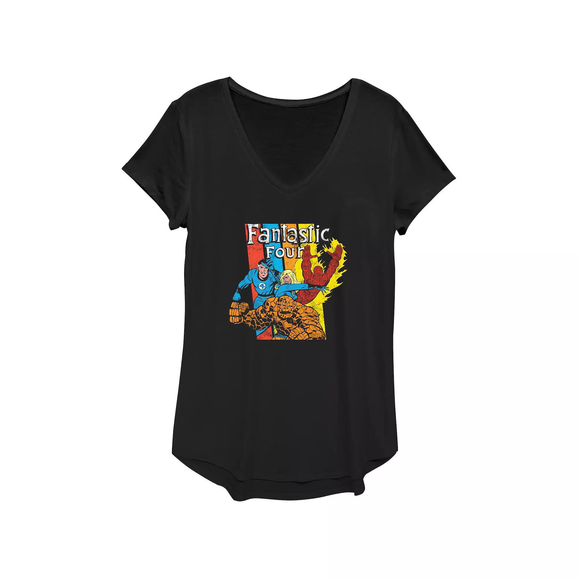 Shell love the look and feel of this Womens Marvel Fantastic Four Action Team Graphic Tee. FEATURES V-neck Short sleevesFABRIC & CARE Polyester, rayon, spandex Machine wash Imported Size: X Small. Color: Black. Gender: female. Age Group: adult.