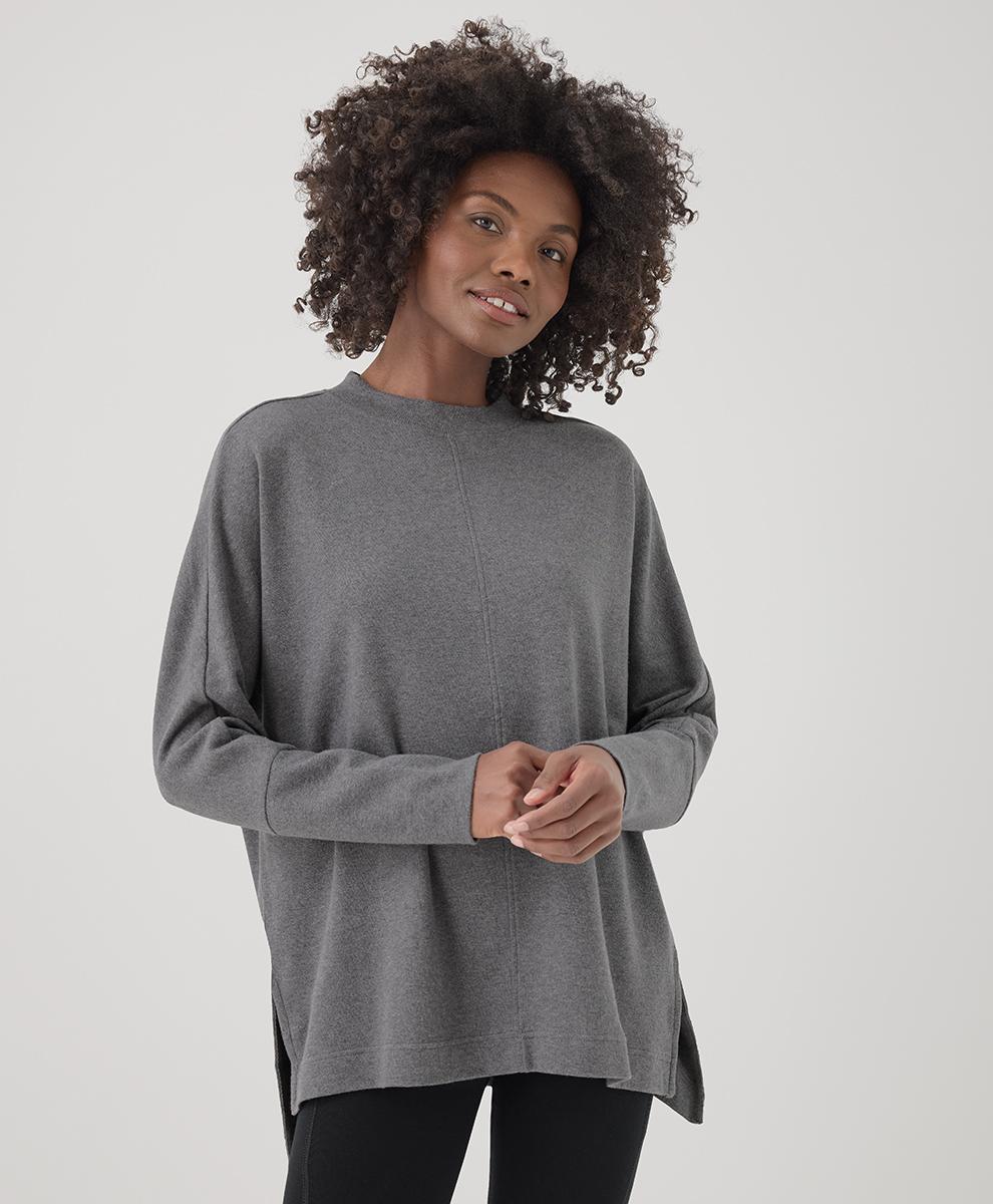 Women's Medium Grey Heather Airplane Long Sleeve Poncho SX. Super soft organic women's Airplane Long Sleeve Poncho from Wear PACT. Fair Trade Factory. GOTS Certified Organic Cotton