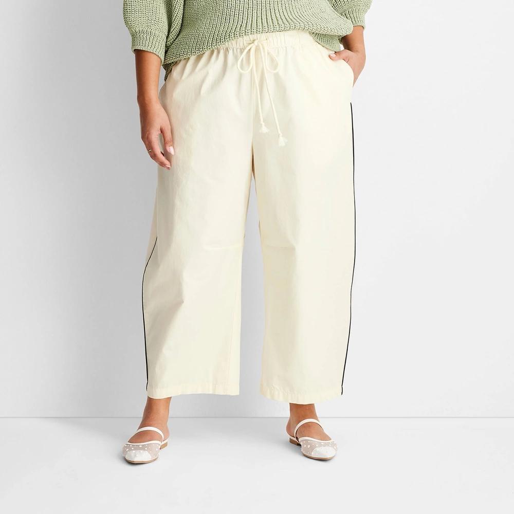 Stay ahead of the fashion game with these Mid-Rise Barrel Leg Track Pants from Future Collective. Made from cotton-recycled cotton blend fabric, these mid-rise pants provide all-day comfort. These track pants feature an adjustable waistband with a flexible drawstring for a snug fit, while the barrel legs add extra flair. Tailored in a relaxed fit, these ankle-length pants boast two side pockets to stash your everyday essentials. Future Collective: Inspired by whats now to inform whats next.