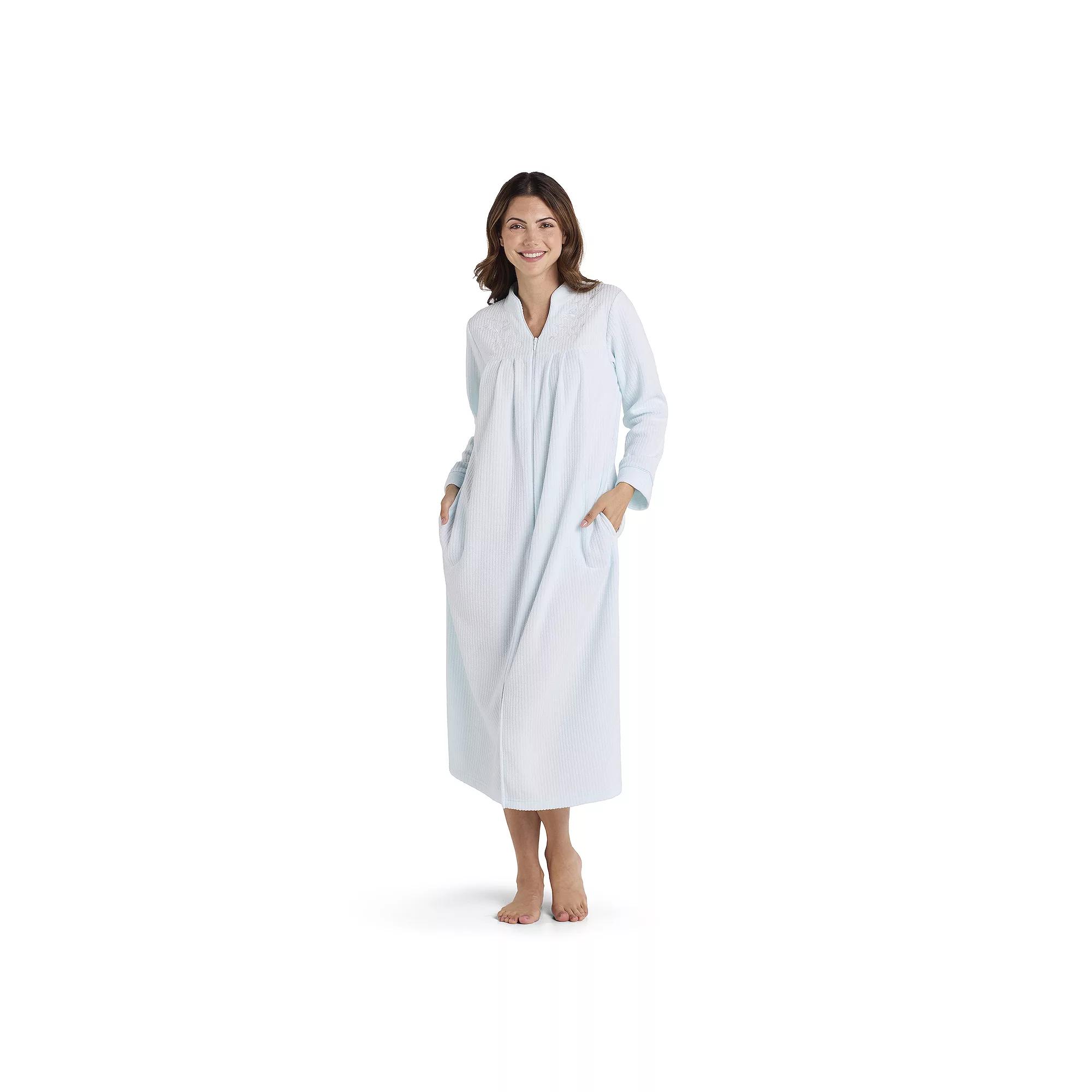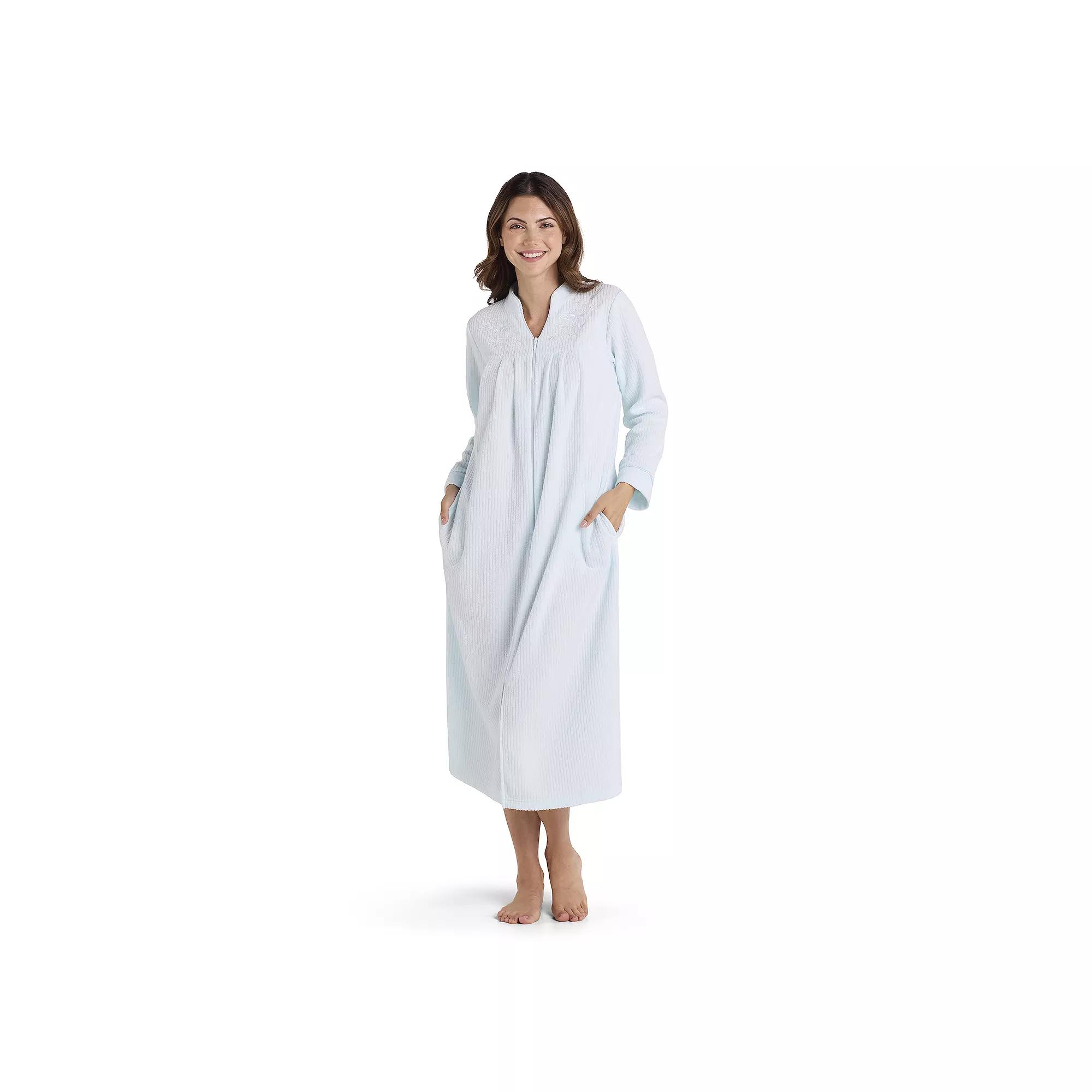 You'll love the cozy style of this Petite Miss Elaine Essentials Brushed Back Terry Long Zip Robe.Click on this WOMEN'S GUIDE to find the perfect fit and more!You'll love the cozy style of this Petite Miss Elaine Essentials Brushed Back Terry Long Zip Robe. Click on this INTIMATES & SLEEPWEAR GUIDE to find the perfect fit and more!FEATURES Soft knit terry construction 2 pockets Zipper front Long sleevesFIT & SIZING Loose fit 50-in. length from shoulder to hemFABRIC & CARE Polyester Machine wash and tumble dry low Imported Size: L Petite. Color: Aqua. Gender: female. Age Group: adult.