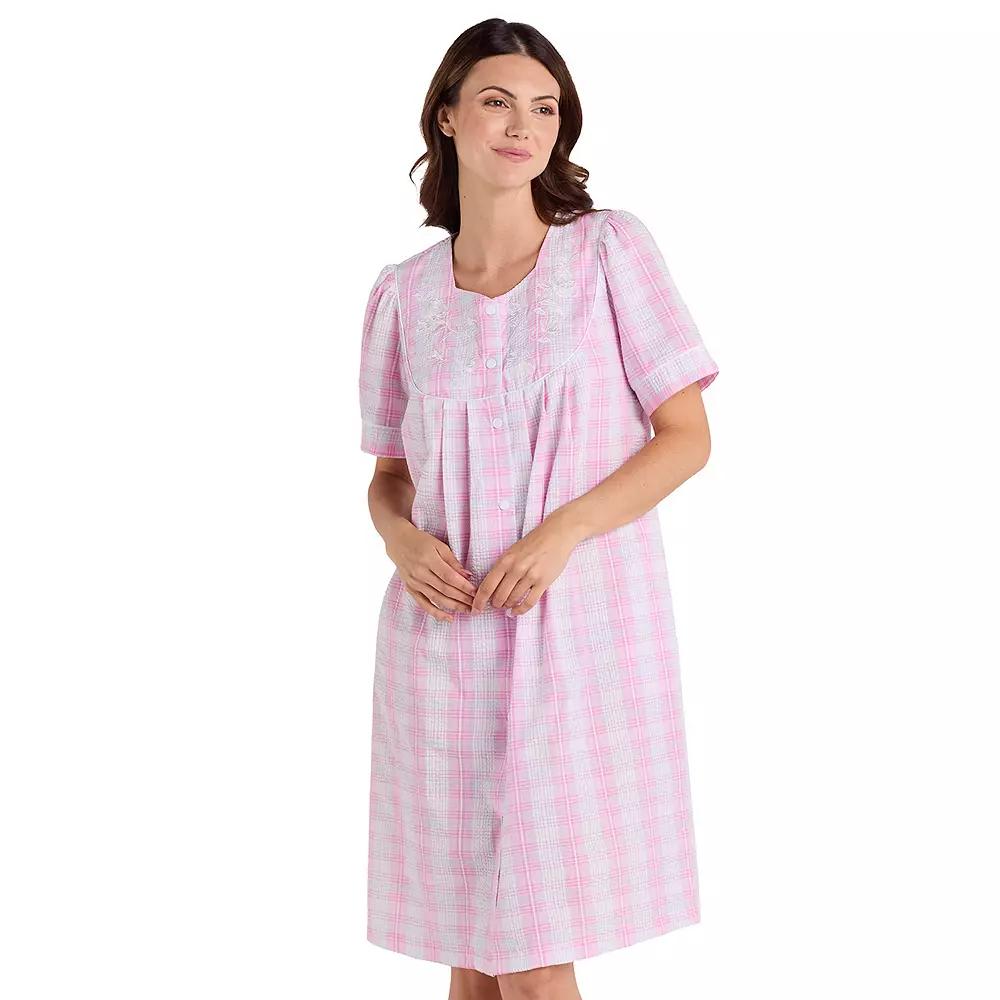 Cozy up in this delightful Seersucker Short Snap Robe from Miss Elaine Essentials. Click on this INTIMATES & SLEEPWEAR GUIDE to find the perfect fit and more!Cozy up in this delightful Seersucker Short Snap Robe from Miss Elaine Essentials. Click on this INTIMATES & SLEEPWEAR GUIDE to find the perfect fit and more!FEATURES Short sleeves Snap front 2 side pockets Seersucker constructionFIT & SIZING Loose fit 42-in. length from shoulder to hemFABRIC & CARE Cotton, polyester Machine wash delicate and tumble dry low Imported Size: Medium. Color: Pink Plaid. Gender: female. Age Group: adult.