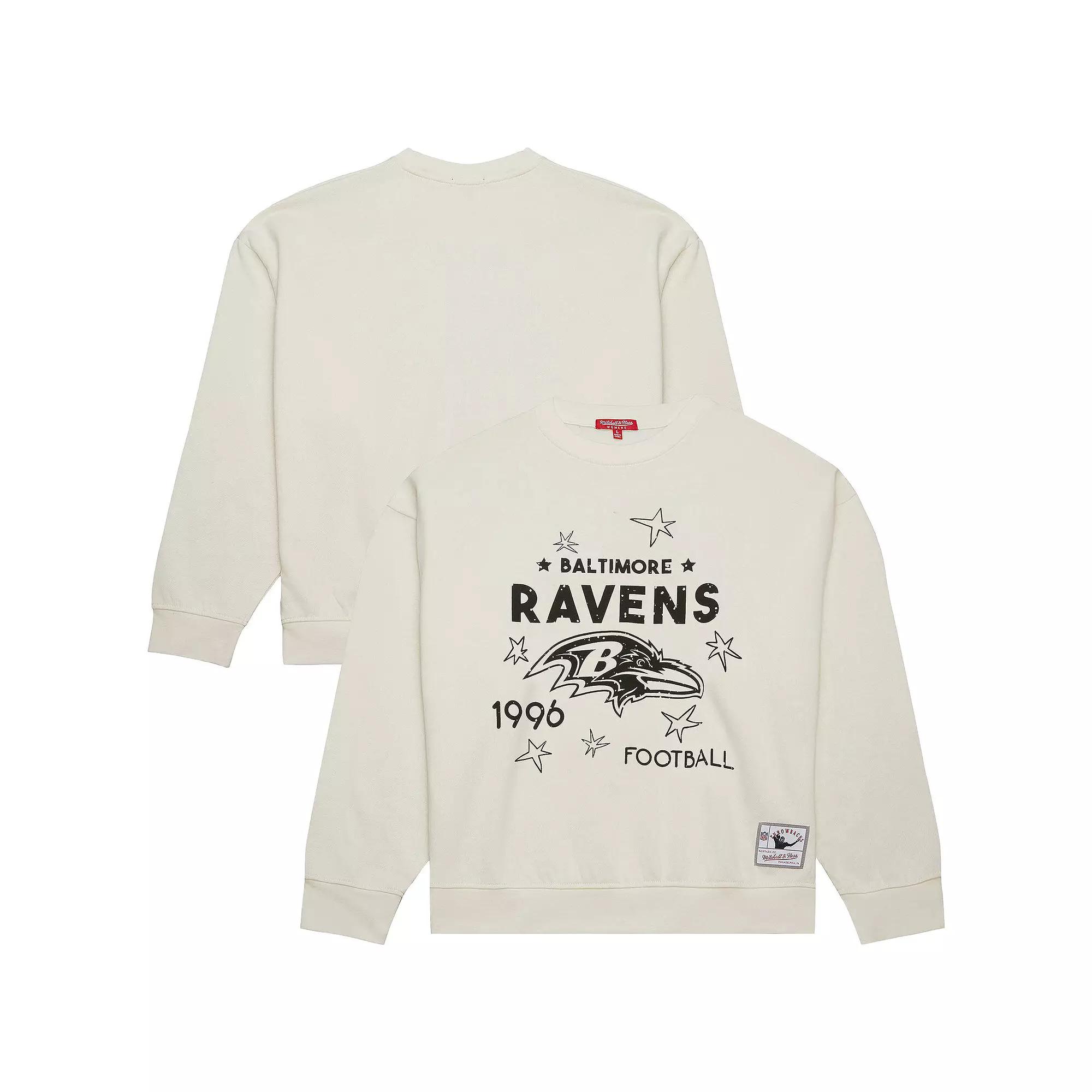Shine bright with Baltimore Ravens pride in this Plus Size Shooting Star Pullover Sweatshirt from Mitchell & Ness. The fleece lining provides added warmth and a soft feel, making it perfect for chilly game days. This lightweight sweatshirt is perfect for layering and showcases your Baltimore Ravens pride with screen print graphics on the front. Material: 60% Cotton/40% Polyester. Rib-knit collar, hem and sleeve cuffs for a snug and comfortable fit. Crew neck. Lightweight sweatshirt suitable for mild temperatures. Pullover. Officially licensed. Long sleeve. Machine wash, tumble dry low. Brand: Mitchell & Ness. Imported. Fleece lining provides added warmth and a soft feel. Screen print graphics on front. Size: 1X. Color: Beige. Gender: female. Age Group: adult.
