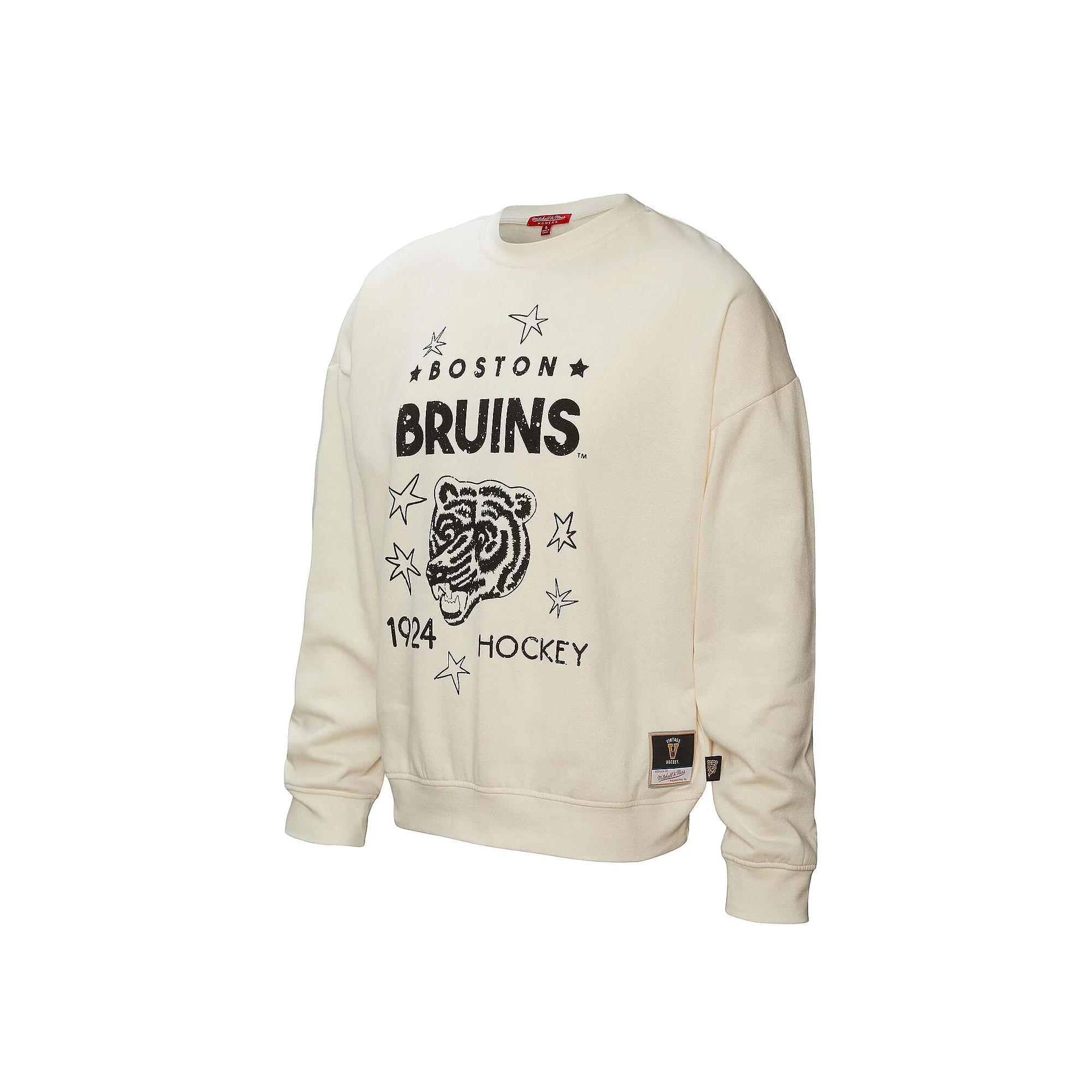 Embrace classic Boston Bruins style with this Mitchell & Ness Logo 3.0 Pullover Sweatshirt. The distressed screen print team name, logo and inaugural year on the front give this sweatshirt a vintage look that celebrates the Boston Bruins. Plus, the midweight cotton-polyester blend provides a comfortable balance of warmth and breathability.Embrace classic Boston Bruins style with this Mitchell & Ness Logo 3.0 Pullover Sweatshirt. The distressed screen print team name, logo and inaugural year on the front give this sweatshirt a vintage look that celebrates the Boston Bruins. Plus, the midweight cotton-polyester blend provides a comfortable balance of warmth and breathability.PRODUCT FEATURESWoven clip tagOfficially licensedCrew neck for a classic lookMachine wash, tumble dry lowBrand: Mitchell & NessLong sleevePulloverMidweight sweatshirt suitable for moderate temperaturesFleece lining provides added warmth and a soft feelMaterial: 60% Cotton/40% PolyesterImportedDistressed screen print team name, logo and inaugural year on front Size: XS. Color: Beige. Gender: female. Age Group: adult.