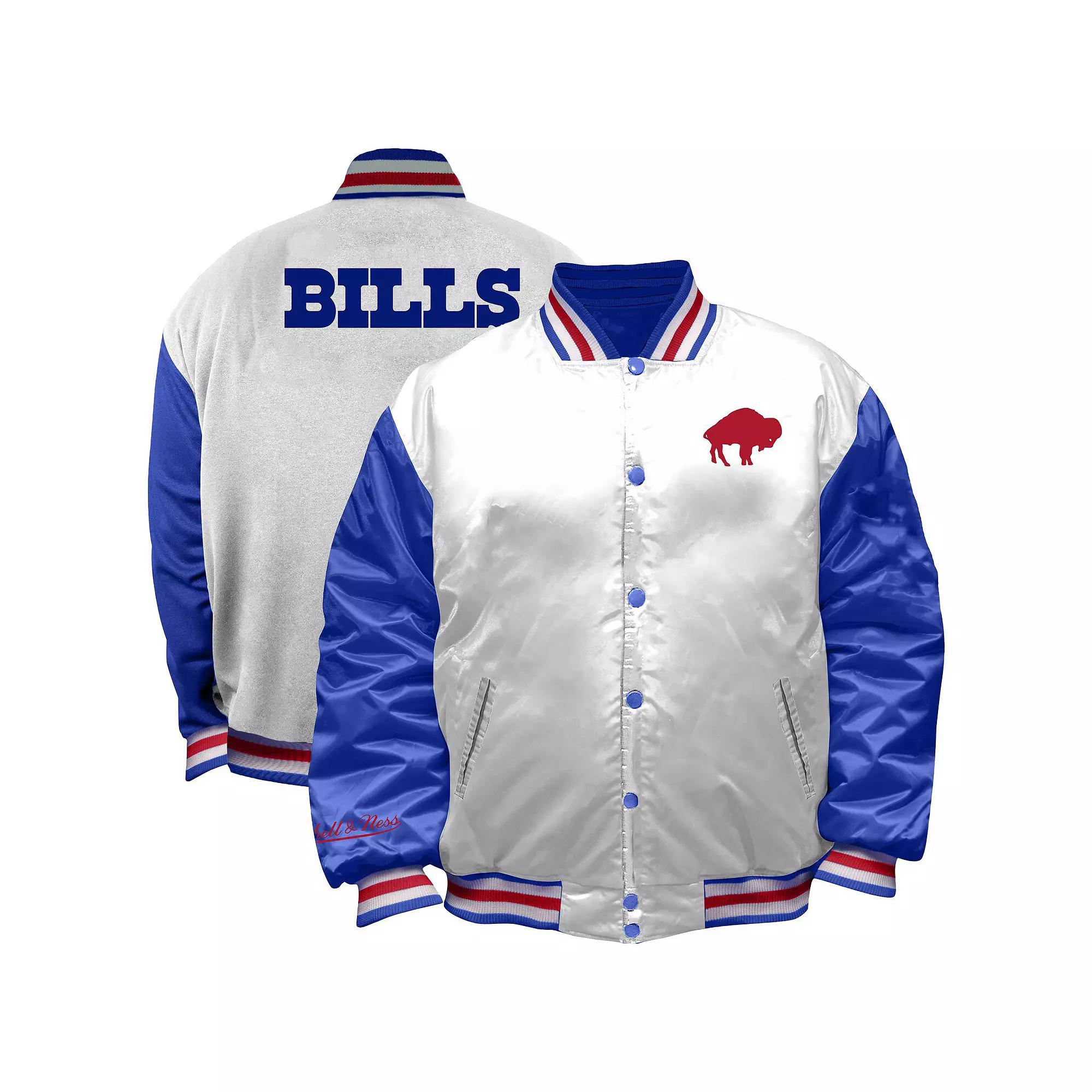 Show off your timeless Buffalo Bills pride with this Throwback Plus Size Full-Snap Satin Jacket from Mitchell & Ness. This satin jacket features embroidered graphics at the left chest, and an embroidered fabric applique wordmark on the back, showcasing your Buffalo Bills pride in style. Its lightweight design makes it perfect for mild temperatures, while the rib-knit collar, hem, and cuffs ensure a snug, comfortable fit. Brand: Mitchell & Ness. Material: 100% Polyester. Rib-knit stand-up collar, hem and sleeve cuffs for a snug and comfortable fit. Lightweight jacket suitable for mild temperatures. Embroidered graphics at left chest. Imported. Machine wash, tumble dry low. Officially licensed. Long sleeve. Embroidered fabric applique wordmark on back. Full Snap. Two front pockets for warming hands or holding small items. Locker loop inside collar. Size: 4X. Color: White. Gender: female. Age Group: adult. Material: COTTON.