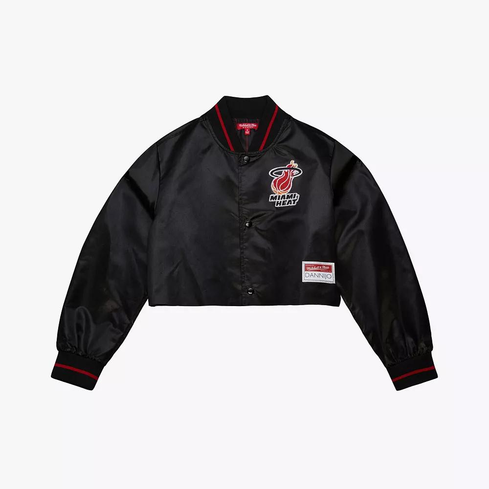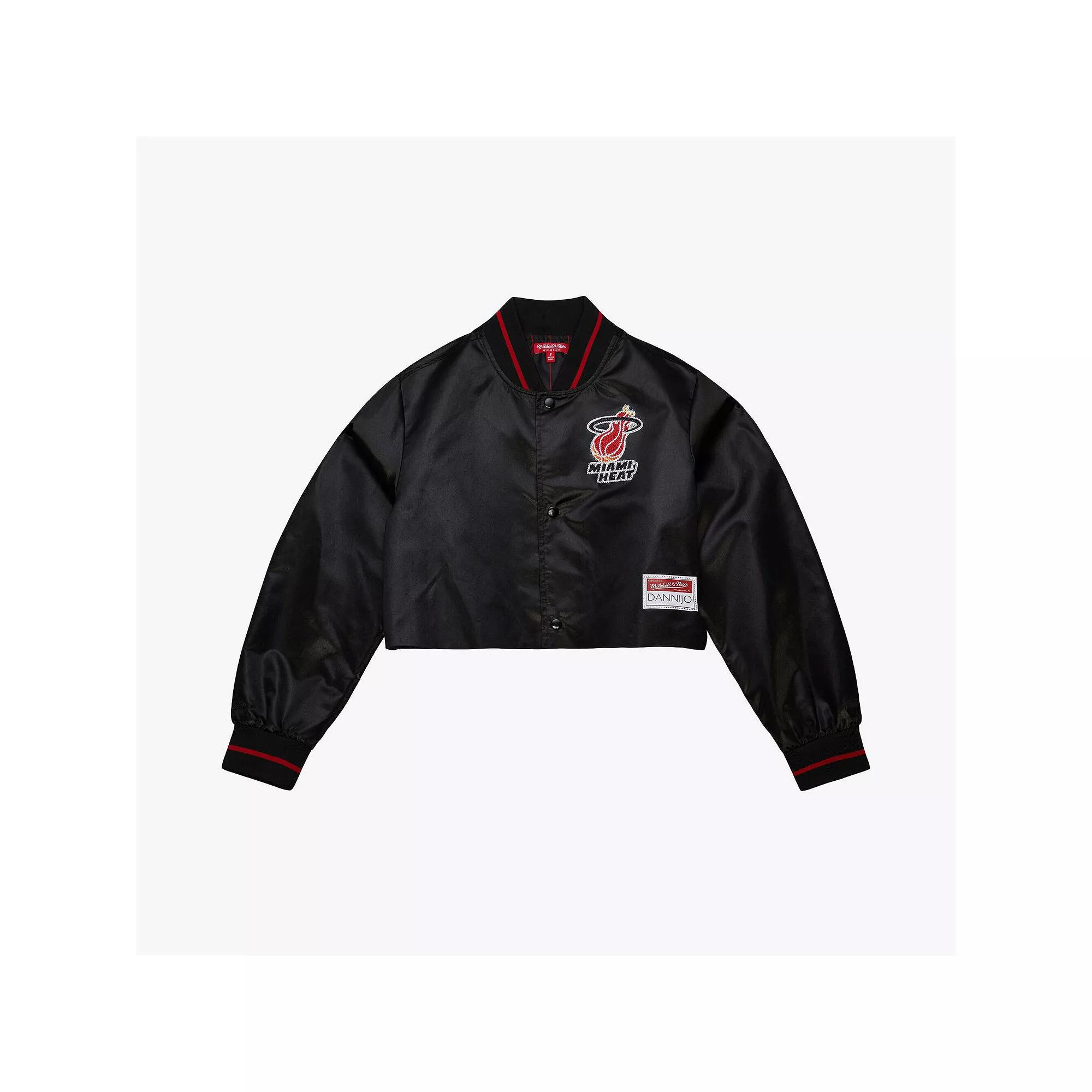 The latest and greatest in the exclusive Mitchell & Ness x DANNIJO collaboration, this Cropped Satin Full-Snap Jacket is a stunning addition to any outfit. Featuring embroidered and bedazzled details, this Miami Heat satin jacket will help you shine like the star you are.The latest and greatest in the exclusive Mitchell & Ness x DANNIJO collaboration, this Cropped Satin Full-Snap Jacket is a stunning addition to any outfit. Featuring embroidered and bedazzled details, this Miami Heat satin jacket will help you shine like the star you are.PRODUCT FEATURESOfficially licensedLong sleeveMaterial: 100% PolyesterImportedFull-button frontCropped designTwo side pocketsRib-knit collar, cuffs and hemBrand: Mitchell & NessEmbroidered fabric appliques with bedazzled detailsMidweight jacket suitable for moderate temperatures Color: Black. Gender: female. Age Group: adult.