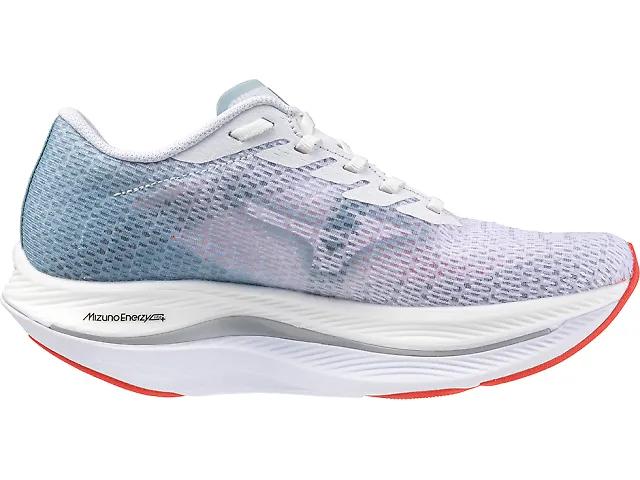 Midsole: The midsole consists of a layer of Mizuno Enerzy Lite+ that is softer and lighter weight to support running at speed. There is a glass fiber-infused nylon wave plate that gives you plenty of propulsion and supports the unique geometry for smooth running from heel to toe. Underneath the Wave Plate is a layer of Mizuno Enerzy foam that gives you high energy return.