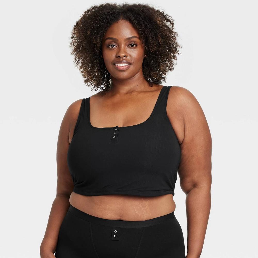 Women's Modal Blend Cropped Tank Top - Auden™ Black 2X: Solid Knit Pullover with Full Lining and Button Details