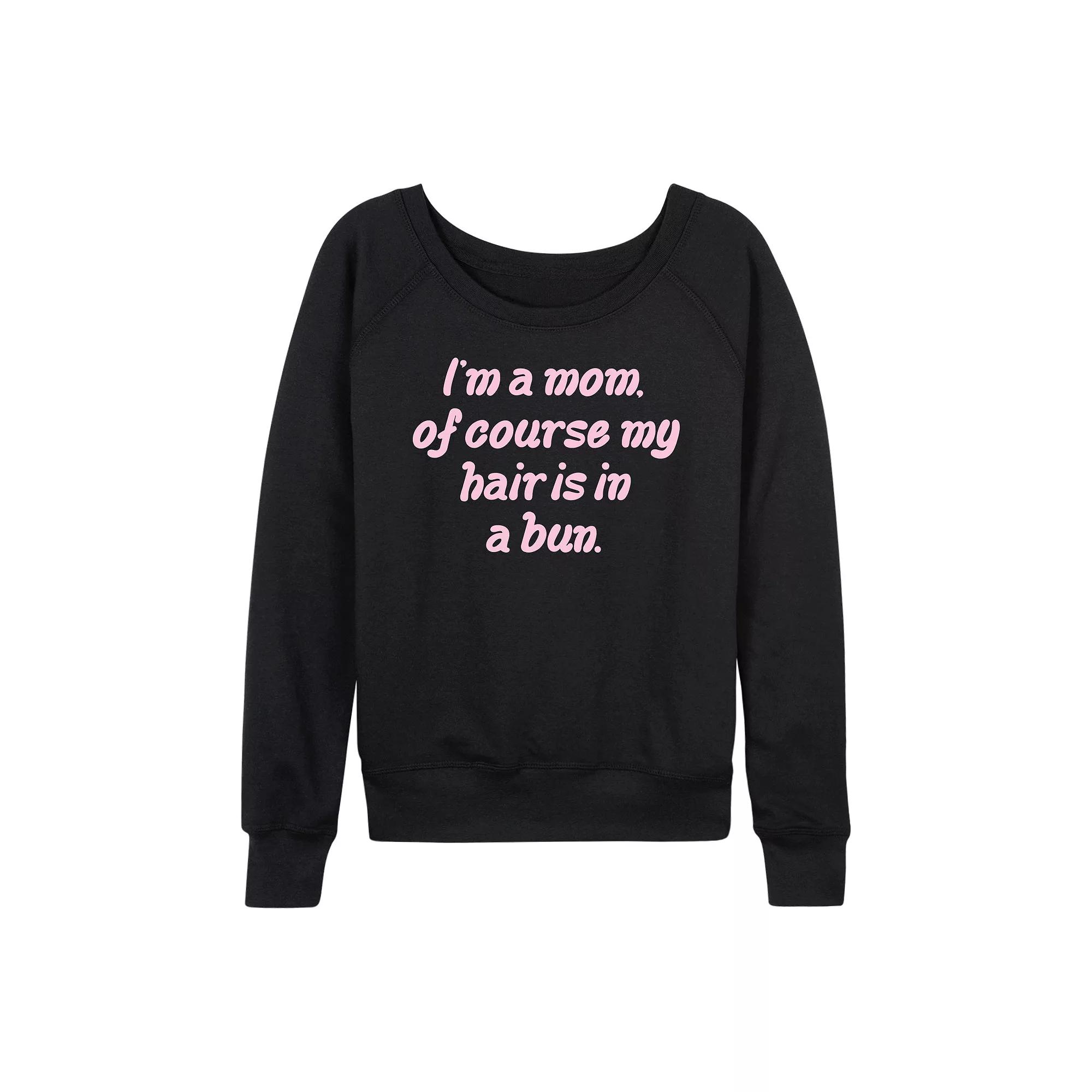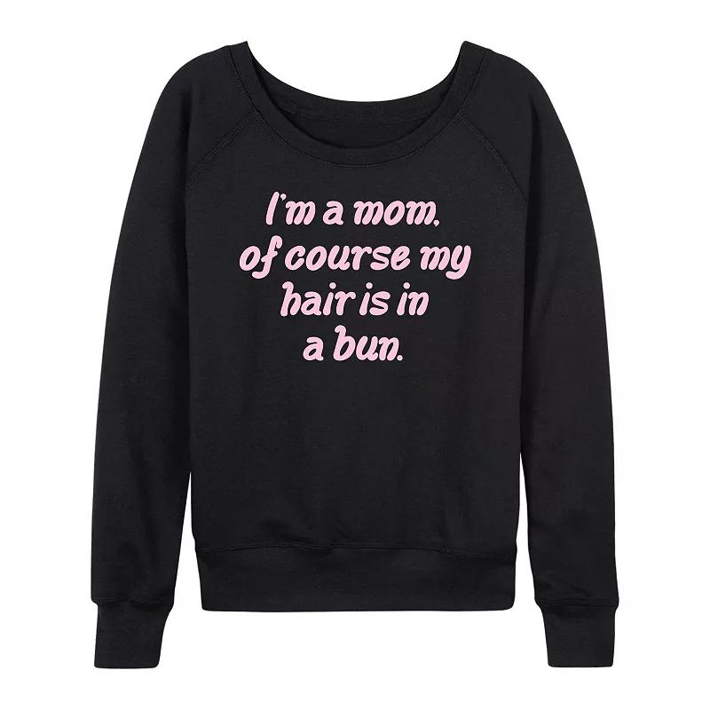 She will love showing off her style with this Women's Mom Of Course Hair In Bun French Terry Long Sleeve Tee.FEATURES Long sleeves ScoopneckFABRIC & CARE Cotton/Polyester, French Terry Machine wash Imported Size: Small. Color: Black. Gender: female. Age Group: adult.