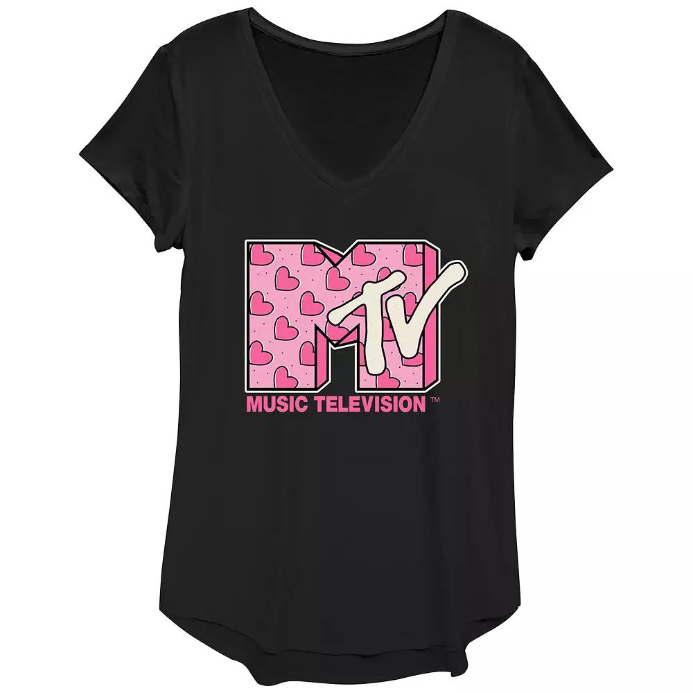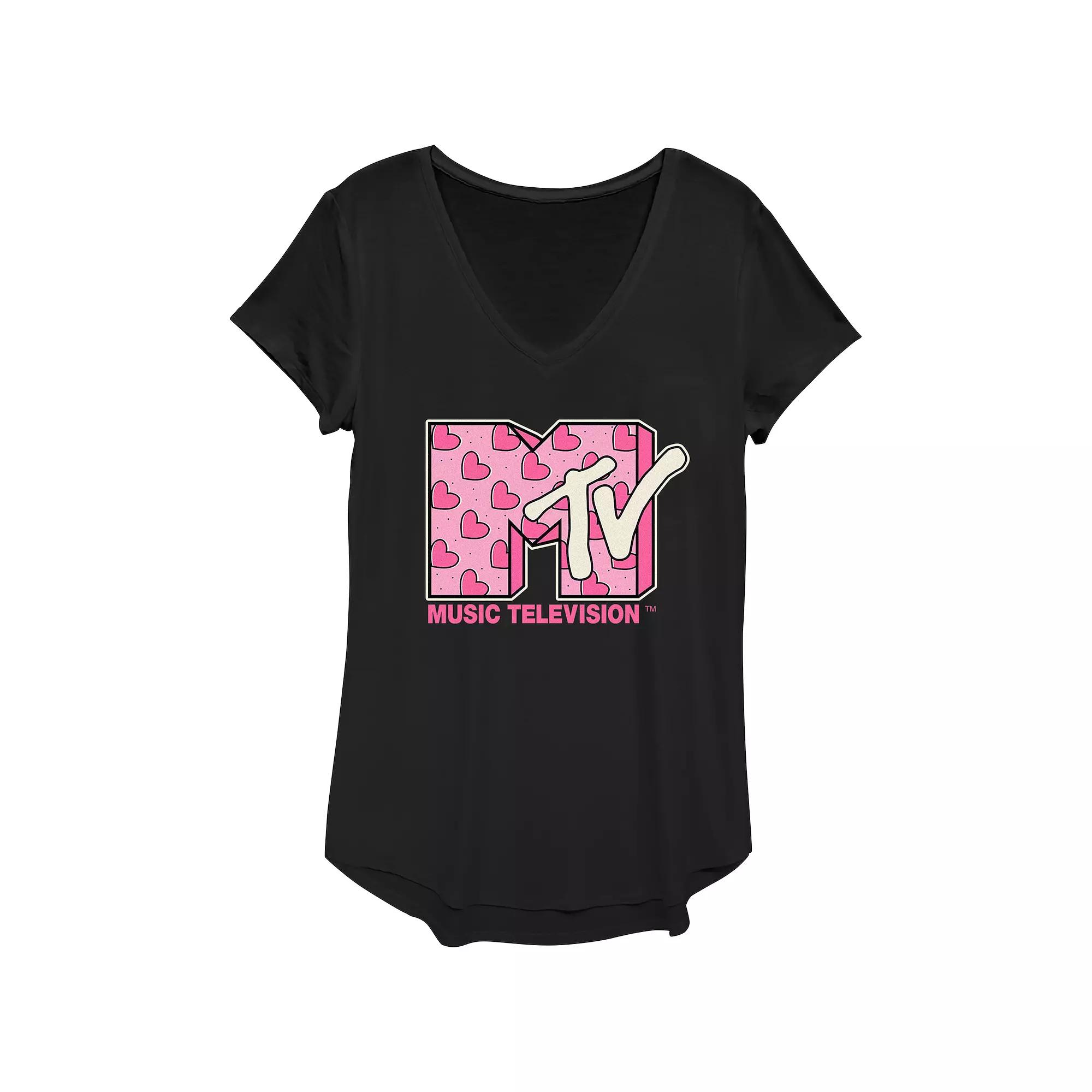 Shell love the look and feel of this Womens MTV Heart Print Logo Graphic Tee. FEATURES V-neck Short SleevesFABRIC & CARE Polyester/Rayon/Spandex Machine wash Imported Size: Small. Color: Black. Gender: female. Age Group: kids.