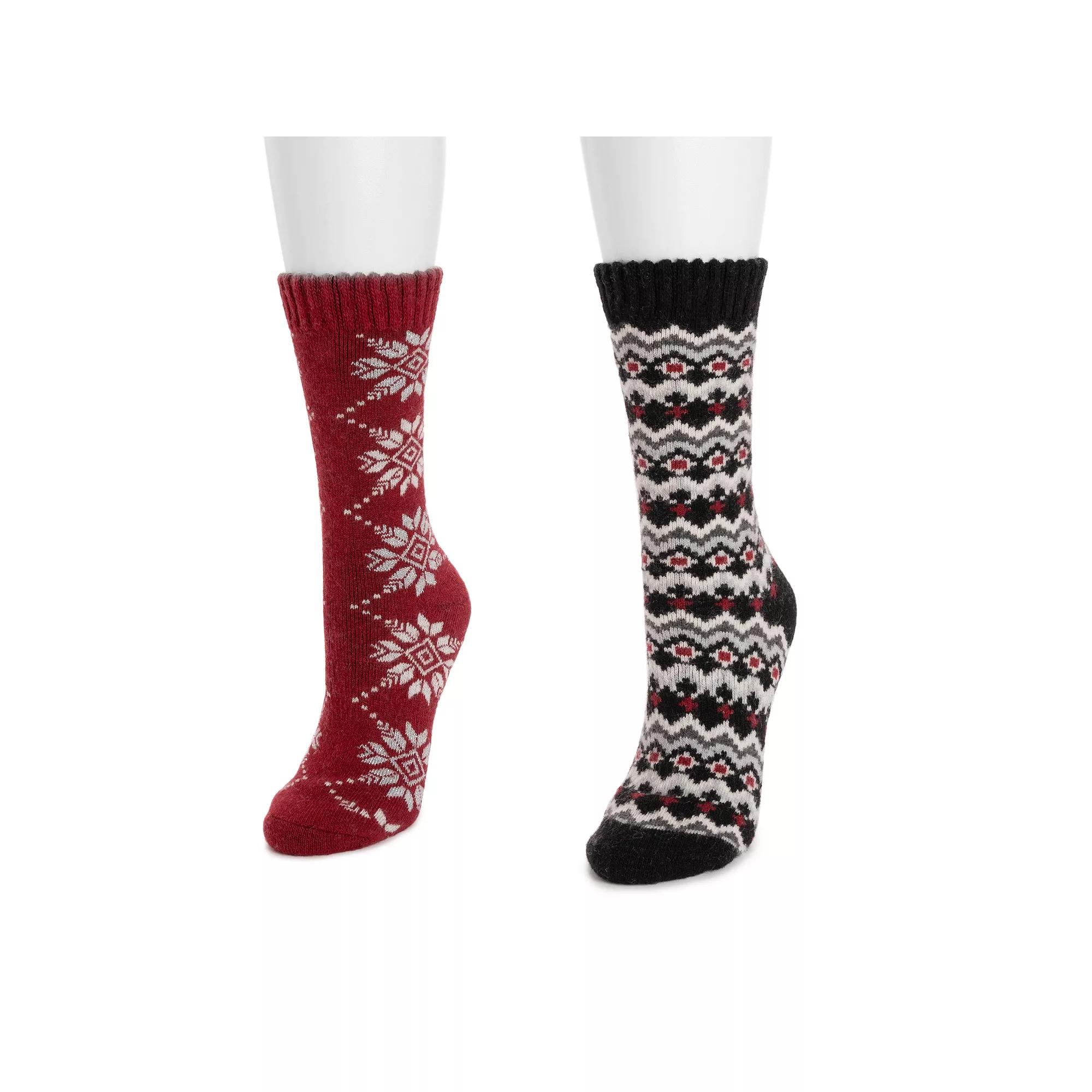 You'll have the sweetest feet in town in MUK LUKS Women's 2 Pair Pack Wool Boot Socks! Featuring fairisle patterns in your choice of several adorable colors, these cuddly socks perfect for cool days and chilly nights. How do you accessorize? Check out our ACCESSORIES GUIDE for essential tips to elevate your style with must-have accessories. - https://www.kohls.com/feature/accessories-guide.jsp. FEATURES: Crew, Warm and comfortable with a foot forming shape, these sweet wool socks won't let you down when temperatures drop, Fits shoe sizes 6-11. FABRIC & CARE: Polyester, wool, acrylic, elastic, spandex, Machine wash, Imported. Size: One Size. Color: Black Silver Red. Gender: female. Age Group: adult. Material: POLY BLEND.