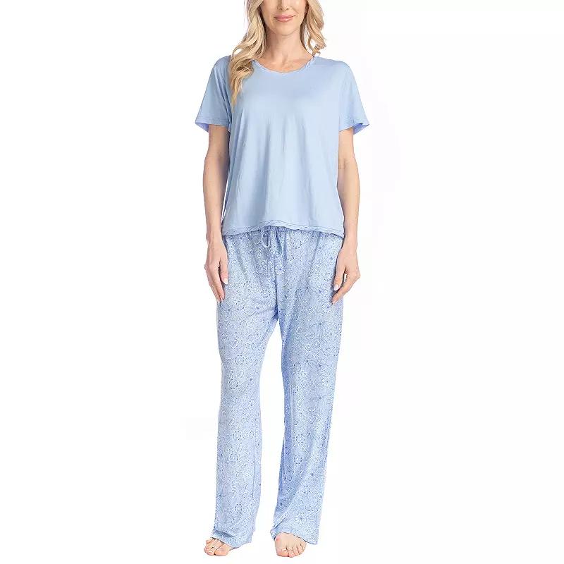 Youll love the look and feel of this womens MUK LUKS Garden Party pajama top & pajama pants set. Click on this INTIMATES & SLEEPWEAR GUIDE to find the perfect fit and more!Youll love the look and feel of this womens MUK LUKS Garden Party pajama top & pajama pants set. Click on this INTIMATES & SLEEPWEAR GUIDE to find the perfect fit and more!FEATURES 2-piece set includes: pajama top and pajama pants Top: short sleeves, crewneck Pants: covered elastic waistband, 2 pocketsFIT & SIZING Relaxed fit 28 1/2-in. inseam 8 1/2-in. straight leg opening Midrise sits on the high hipFABRIC & CARE Polyester, spandex Machine wash and tumble dry Imported Size: Medium. Color: Blue Toile. Gender: female. Age Group: adult.