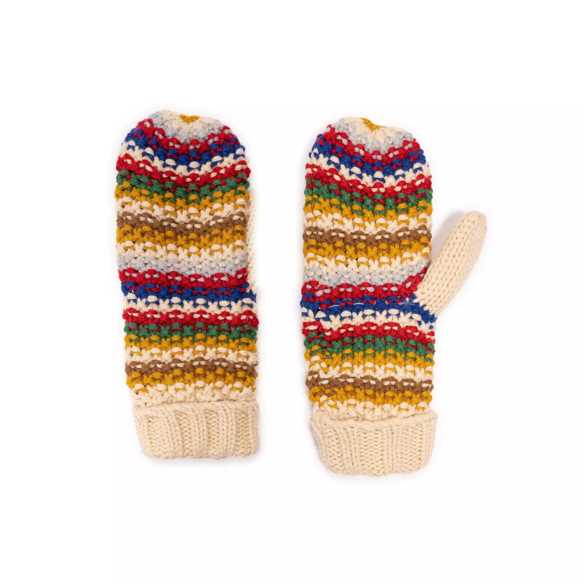 Embrace the winter chill with the delightful MUK LUKS Women's Textured Stripe Knit Mittens, designed for both warmth and style. Featuring a vibrant chunky knit stripe pattern, these mittens add a playful touch to your winter wardrobe while ensuring your hands stay cozy and snug all season long. How do you accessorize? Check out our ACCESSORIES GUIDE for essential tips to elevate your style with must-have accessories. - https://www.kohls.com/feature/accessories-guide.jsp. FEATURES: Chunky knit striped design, Soft texture. FIT & SIZE: One size fits most, Hand circumference range around knuckles: 8", Palm to fingertip length: 8". DETAILS: Imported. MATERIAL & CARE: Upper: acrylic, Lining: polyester, Machine wash. Color: Cream Team. Gender: female. Age Group: adult.