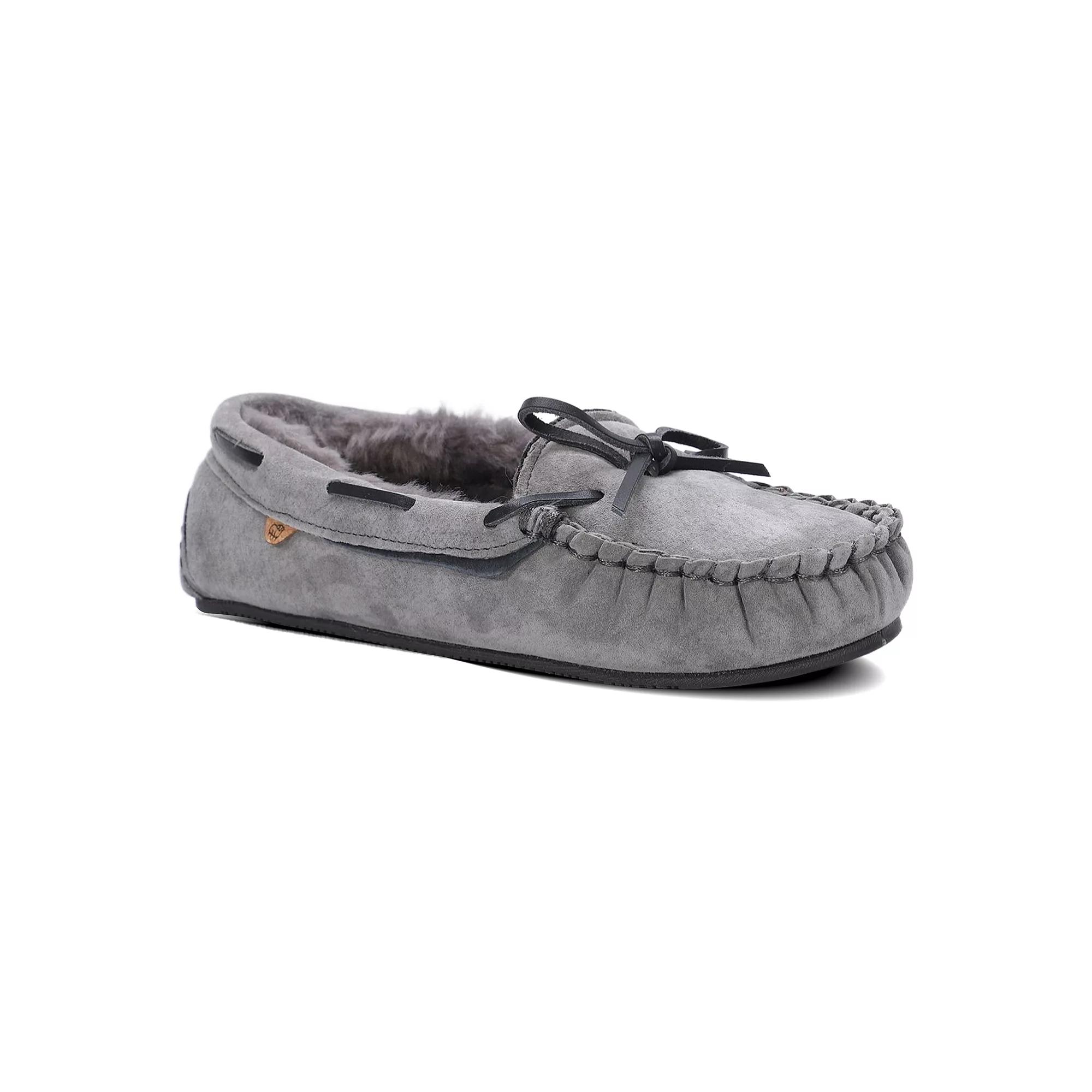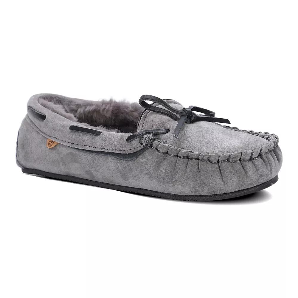 Cozy comfort is yours with these Womens LAMO Hannah Moc Slippers. Click this FOOTWEAR GUIDE to find the perfect fit and more! Cozy comfort is yours with these Womens LAMO Hannah Moc Slippers. Click this FOOTWEAR GUIDE to find the perfect fit and more! DETAILS Upper Material: Suede Leather Lining: Faux-Fur Midsole Material: Foam Outsole Material: TR Moc toe Pull-on Flex groove outsole Platform Height: .25-in. Spot clean Imported Size: 7. Color: Grey. Gender: female. Age Group: adult.