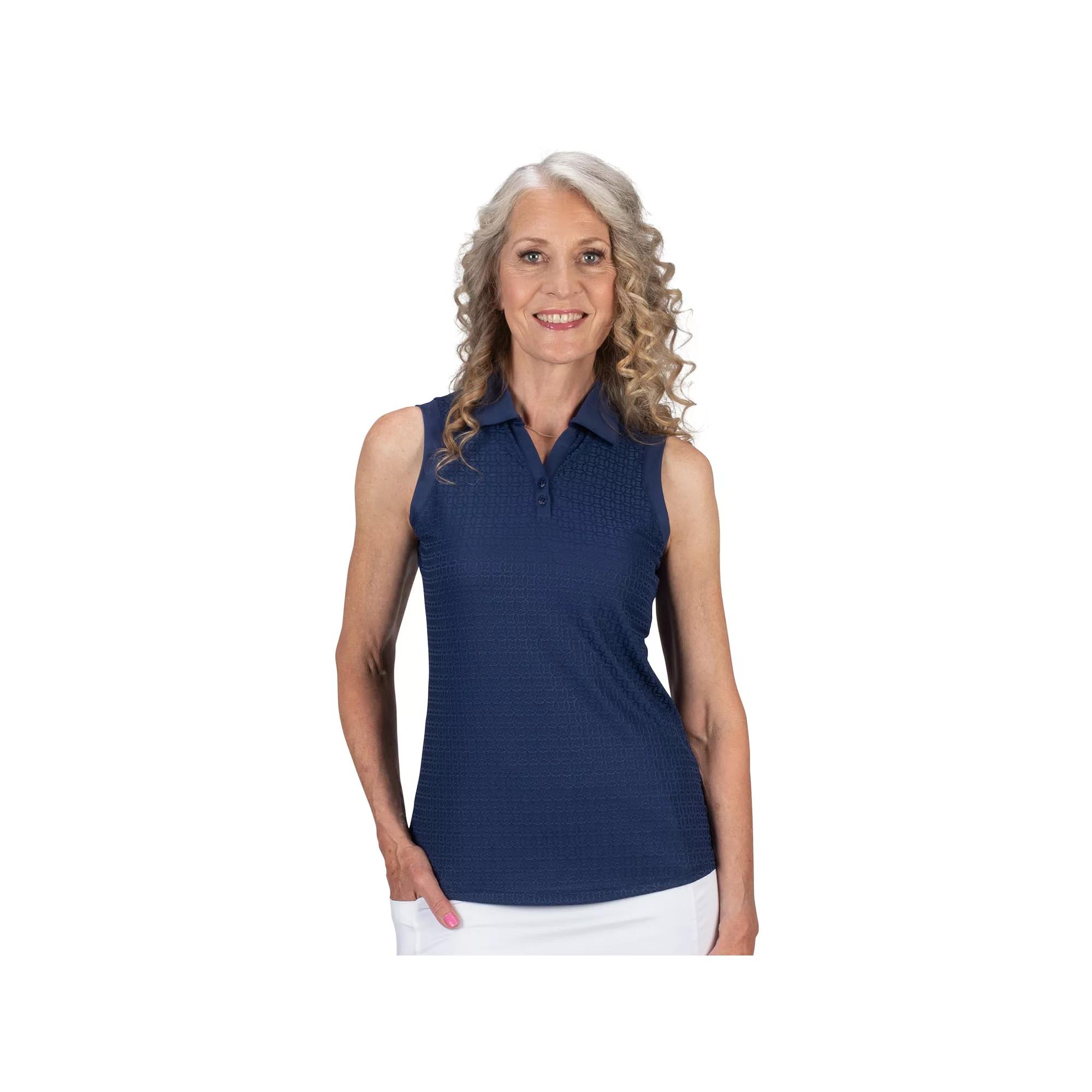 The women's Nancy Lopez Journey sleeveless polo is constructed from a beautiful jacquard fabric with Delux Dri moisture-wicking technology. Click on this WOMEN'S GUIDE to find the perfect fit and more!The women's Nancy Lopez Journey sleeveless polo is constructed from a beautiful jacquard fabric with Delux Dri moisture-wicking technology. Click on this WOMEN'S GUIDE to find the perfect fit and more!PRODUCT FEATURES Moisture-wicking technology Splitneck with 2-button placket Sleeveless Jersey constructionFABRIC & CARE Polyester, spandex Machine wash Imported Size: Medium. Color: Navy. Gender: female. Age Group: adult. Pattern: Solid.