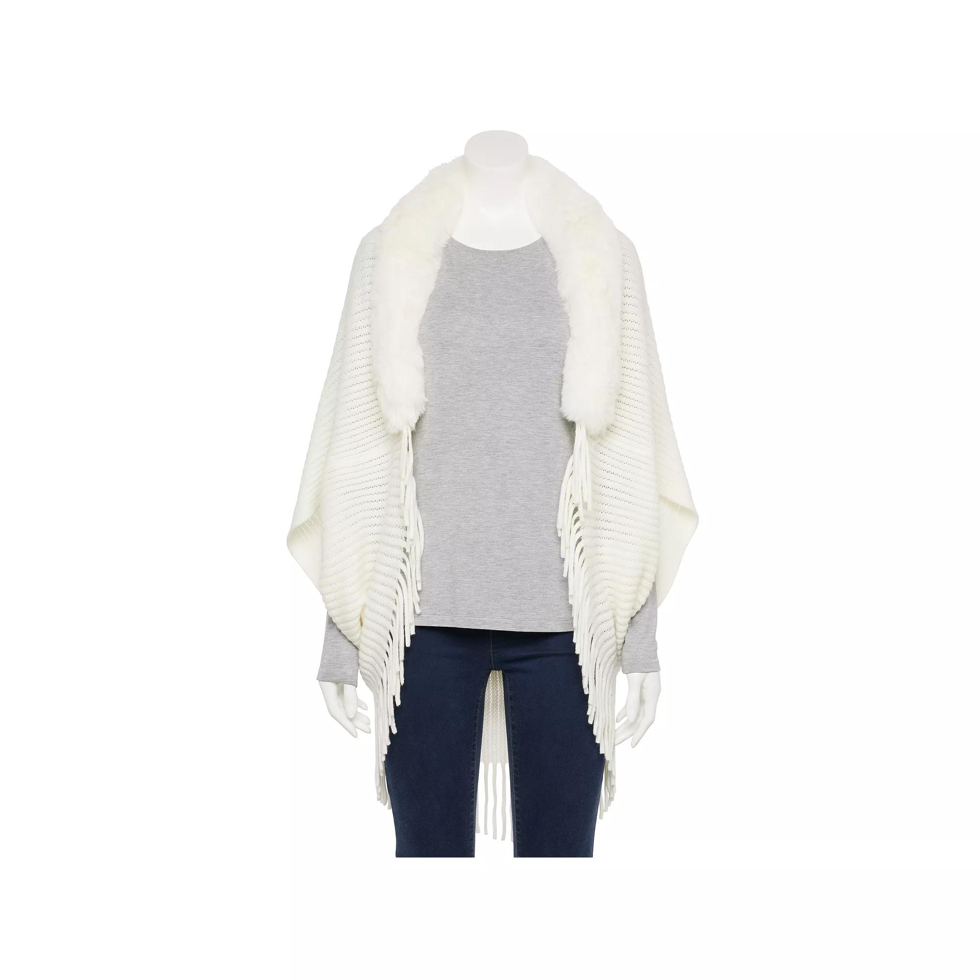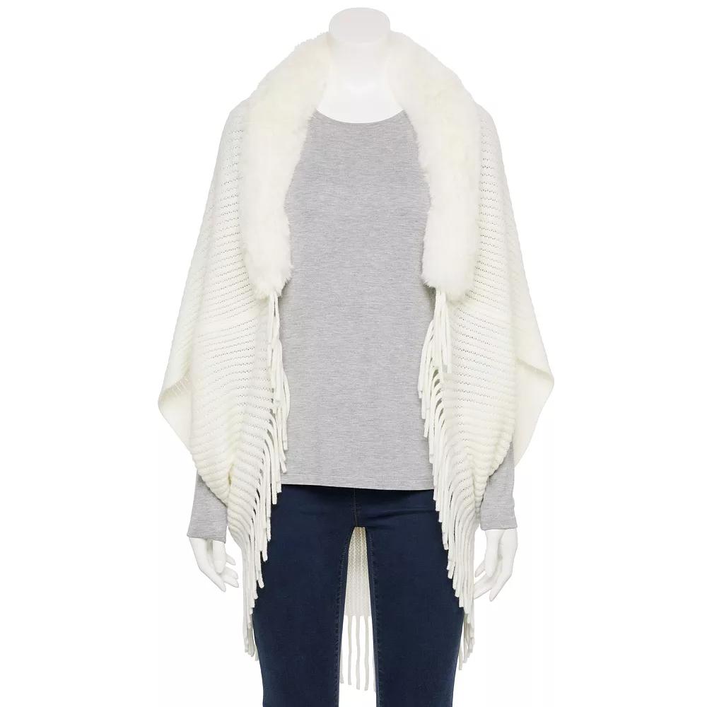 Give your look a warm and stylish upgrade with this Women's Nanette Lepore Cropped Tasseled Faux Fur Collar Ruana, perfect for layering.Click on this WOMEN'S GUIDE to find the perfect fit and more!Give your look a warm and stylish upgrade with this Women's Nanette Lepore Cropped Tasseled Faux Fur Collar Ruana, perfect for layering.Click on this WOMEN'S GUIDE to find the perfect fit and more! How do you accessorize? Check out our ACCESSORIES GUIDE for essential tips to elevate your style with must-have accessories.FEATURES Faux fur collar Lightweight warmth rating Cropped hem with tassel stringsFABRIC & CARE Acrylic Dry clean Imported Size: One Size. Color: Ivory. Gender: female. Age Group: adult.