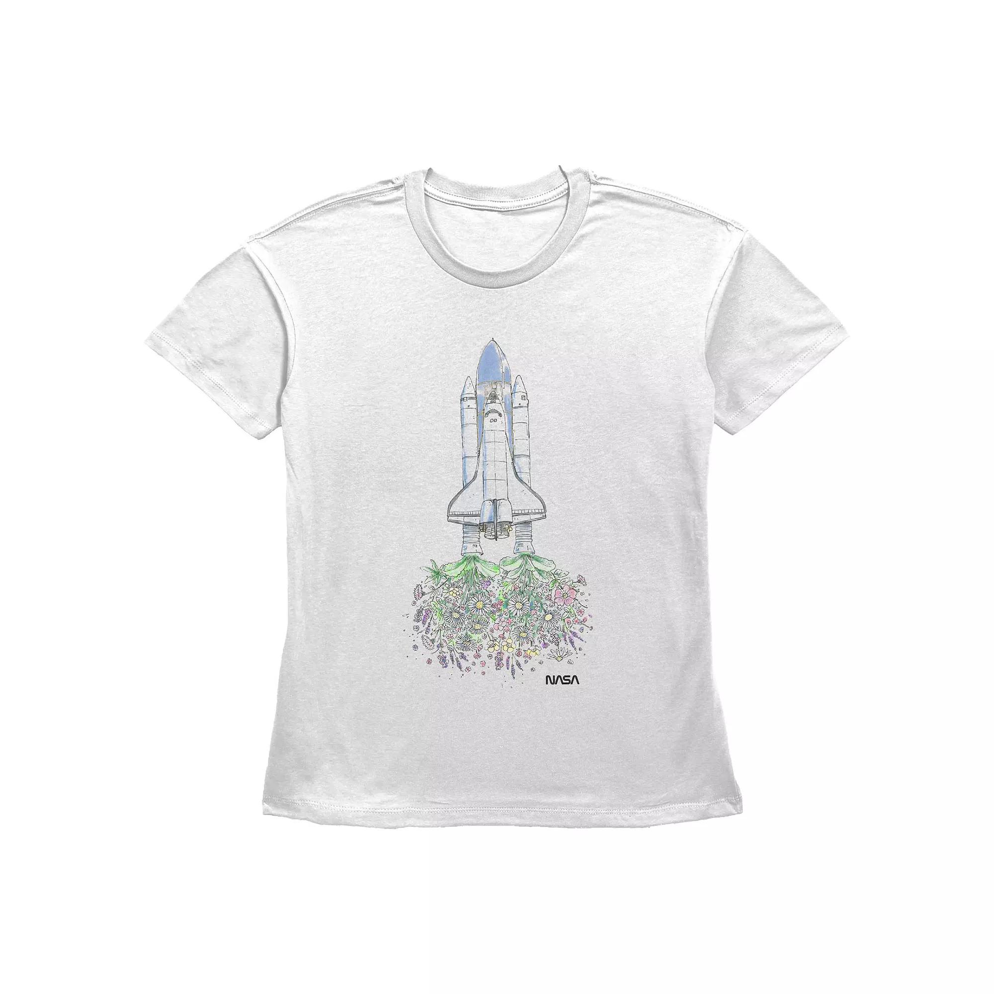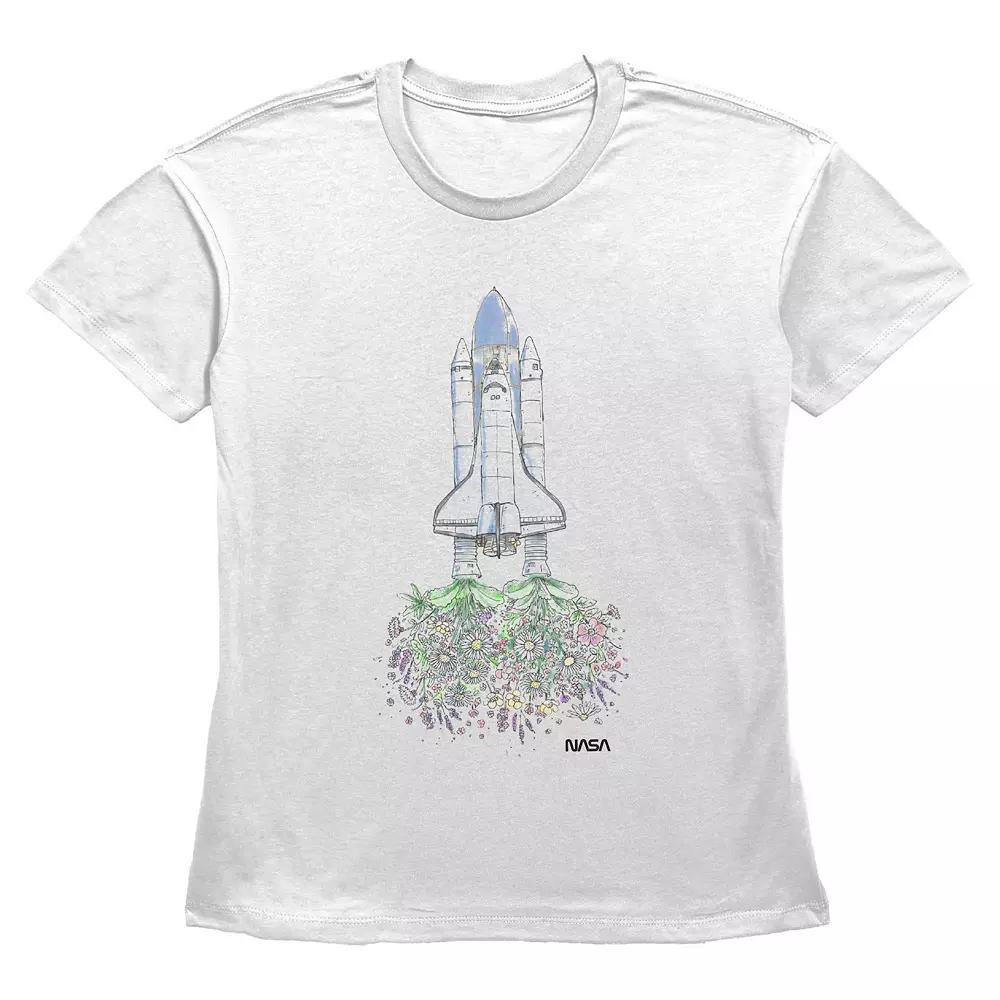 Give your wardrobe a Spring refresh with this Women's Nasa Flower Space Rocket Graphic Tee.FEATURES Crewneck Short sleevesFABRIC & CARE Cotton Machine wash Imported Size: Large. Color: White. Gender: female. Age Group: adult.