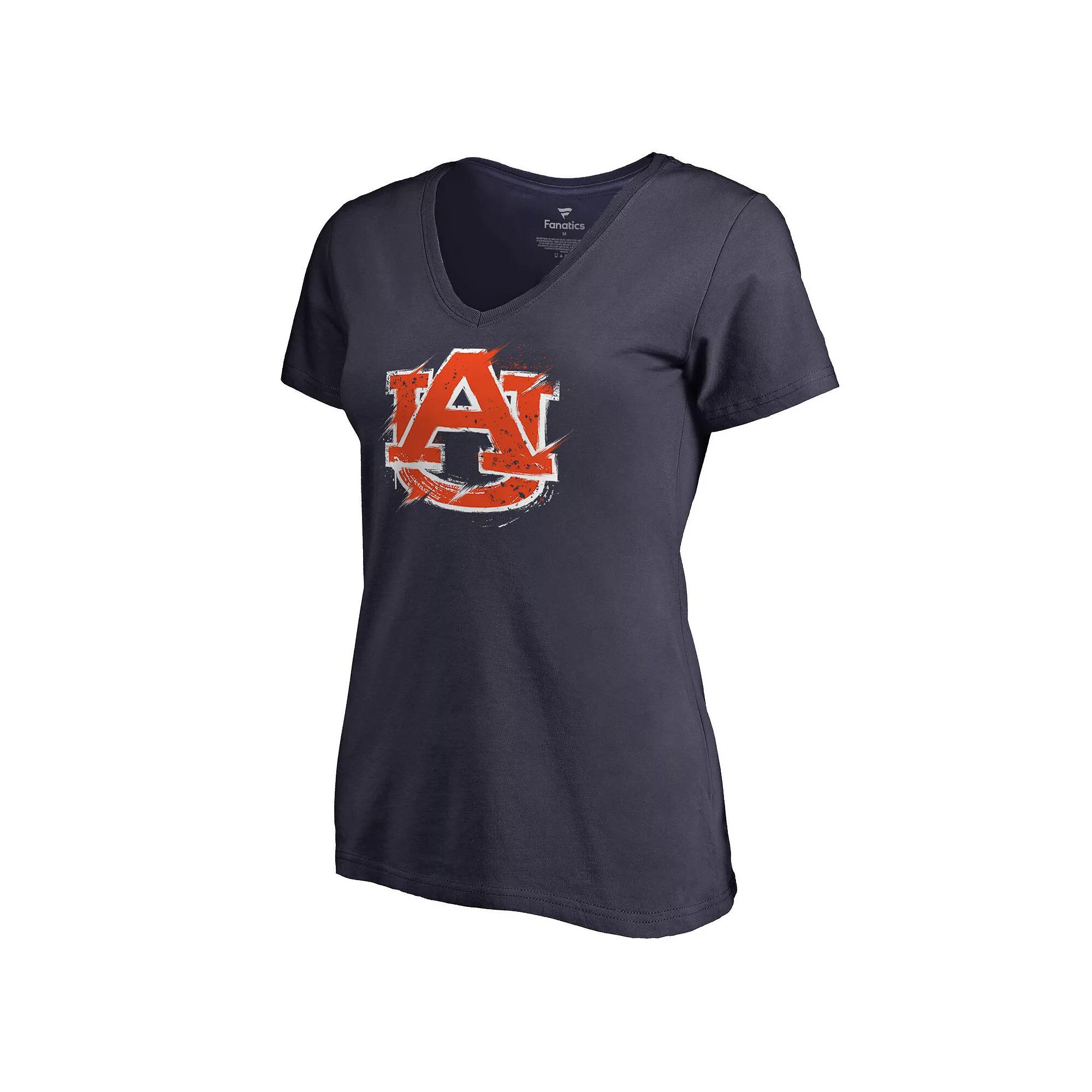 Women's Navy Auburn Tigers Splatter Logo V-Neck T-Shirt,