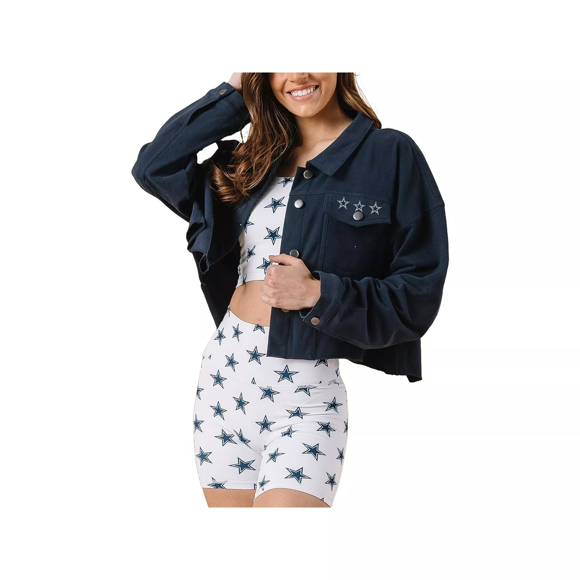 Let everyone know youre the Baroness of AT&T Stadium every time you slay the house down in this Dallas Cowboys full-snap shacket. While the sweatshirt-like material adds comfort to your collection, the helpful pockets ensure your essentials can be carried with ease. Along with a trendy cropped hem and dazzling rhinestone detailing on the back, this top features striking Dallas Cowboys graphics to elevate both your style and your love for Americas Team.