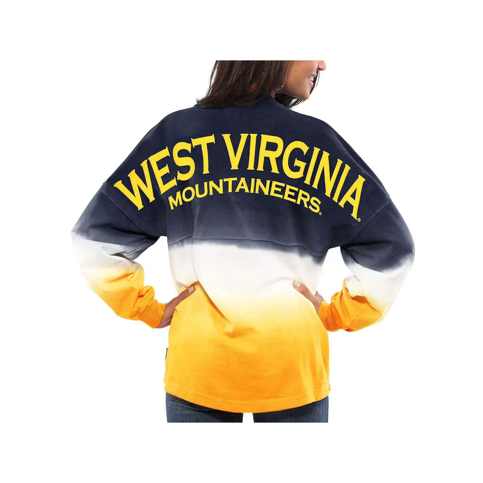 Show off your West Virginia Mountaineers devotion by wearing this Ombre Spirit Jersey long sleeve T-shirt around town.Show off your West Virginia Mountaineers devotion by wearing this Ombre Spirit Jersey long sleeve T-shirt around town.Loose Fit: Oversized cut. Designed with little to no structure in shoulders, chest and waist.Sizing Tip: Product runs large. We recommend ordering one size smaller than you normally wear.Material: 100% CottonSublimated coloringPuff paint print graphicsRib-knit collar and cuffsCrew neckLong sleeveMachine wash, tumble dry lowOfficially licensedBrand: Spirit Jersey Color: WVU NAVY. Gender: female. Age Group: adult.