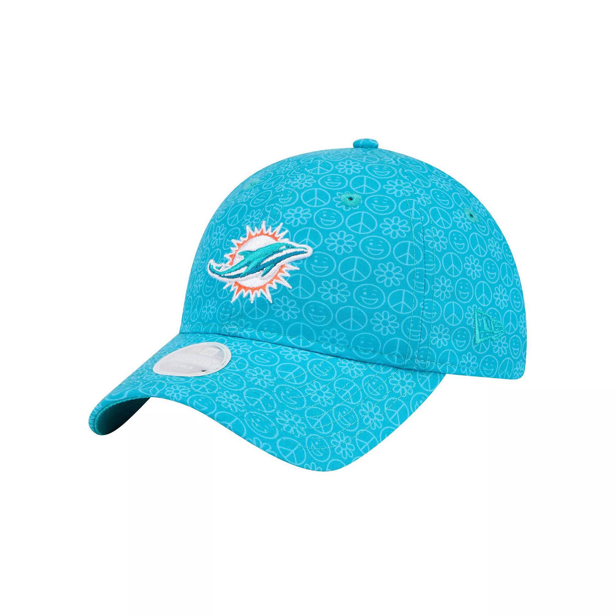 Peace, flowers and happiness all partner nicely with your unwavering fandom for the Miami Dolphins. Represent your team in style when you wear this New Era Smiley 9TWENTY hat. It features a cute allover design that accents the embroidered Miami Dolphins logo splendidly. An adjustable strap closure ensures your perfect fit is just a cinch away, making this cap an essential for gamedays.Peace, flowers and happiness all partner nicely with your unwavering fandom for the Miami Dolphins. Represent your team in style when you wear this New Era Smiley 9TWENTY hat. It features a cute allover design that accents the embroidered Miami Dolphins logo splendidly. An adjustable strap closure ensures your perfect fit is just a cinch away, making this cap an essential for gamedays.PRODUCT FEATURESUnstructured relaxed fitCurved billAdjustable fabric strap with slide buckleLow CrownOfficially licensedSix panels with eyeletsBrand: New EraMaterial: 100% CottonOne size fits mostEmbroidered graphics with raised detailsImportedWipe clean with a damp cloth Size: One Size. Color: Turq/Aqua. Gender: female. Age Group: adult.