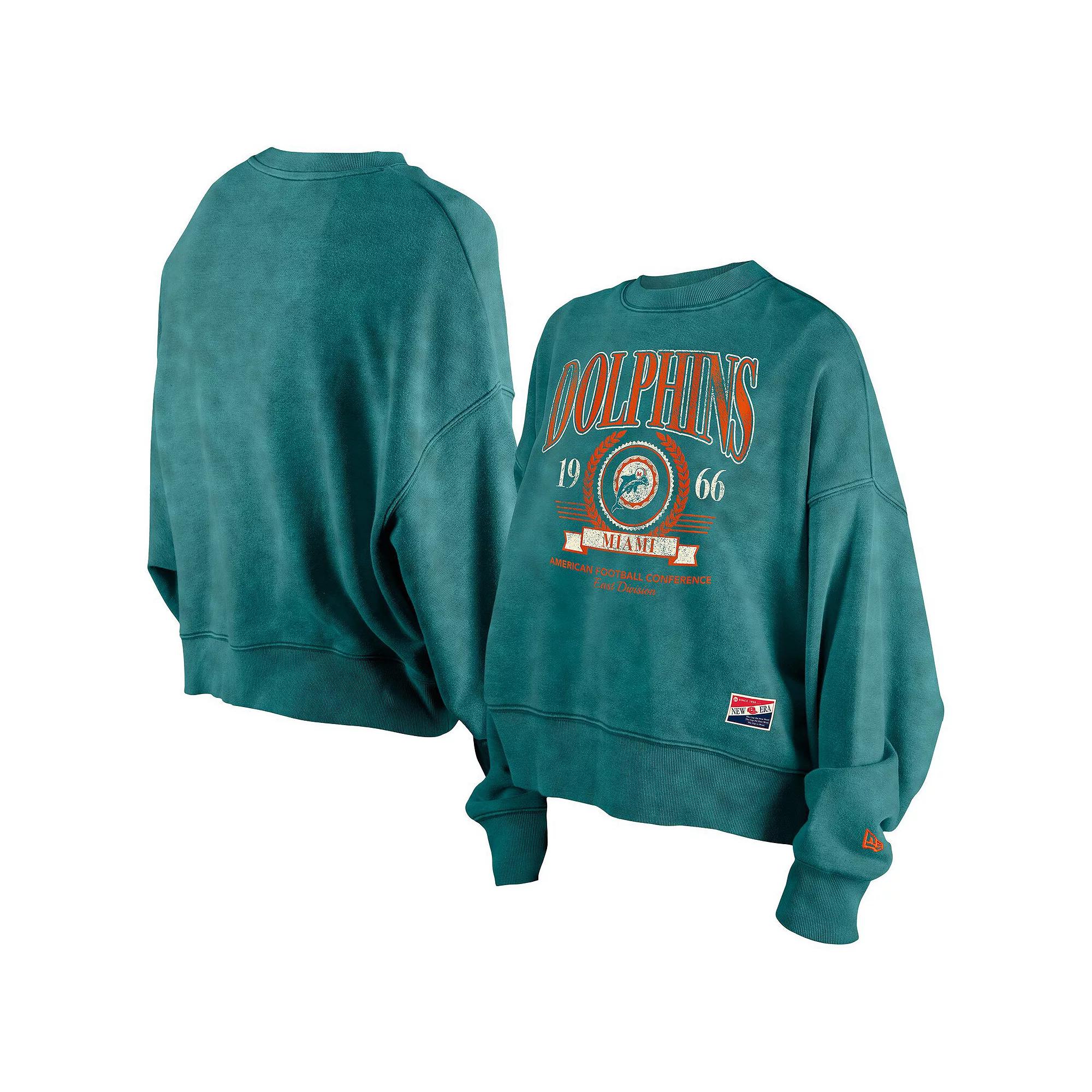 Embrace the vintage vibes of Miami Dolphins history with this New Era Throwback Boxy Sweatshirt. The distressed screen print graphics provide a throwback look that harkens back to the glory days of the organization. Its boxy silhouette allows for comfortable movement and a relaxed fit that's perfect for Miami Dolphins kickoff or casual outings.Embrace the vintage vibes of Miami Dolphins history with this New Era Throwback Boxy Sweatshirt. The distressed screen print graphics provide a throwback look that harkens back to the glory days of the organization. Its boxy silhouette allows for comfortable movement and a relaxed fit that's perfect for Miami Dolphins kickoff or casual outings.PRODUCT FEATURESLong sleeveBrand: New EraPulloverLightweight pullover suitable for mild temperaturesOfficially licensedMachine wash, tumble dry lowImportedMaterial: 80% Cotton/20% PolyesterDistressed screen print graphics Color: Turq A. Gender: female. Age Group: adult.