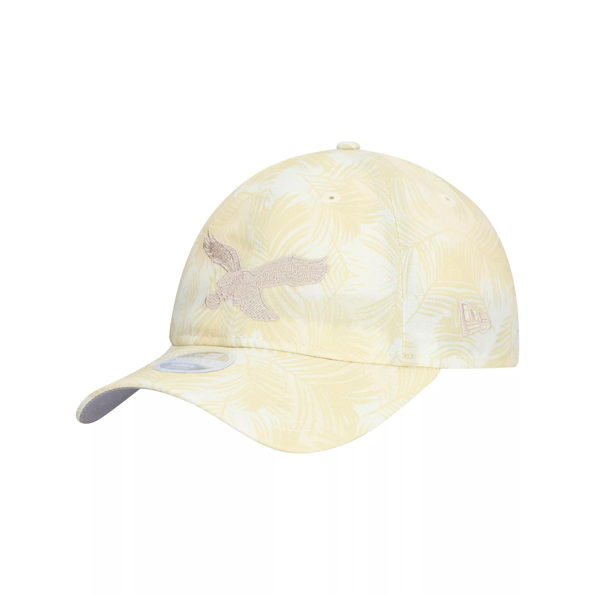 This New Era Frond 9TWENTY Adjustable Hat is a great way to rep your Philadelphia Eagles pride. The 9TWENTY is New Era's relaxed fit adjustable silhouette, providing a well-worn look that sits low on your head for casual comfort. The embroidered team logo with raised detail takes center stage against the stylish printed palm frond pattern, making this Philadelphia Eagles hat a standout piece.This New Era Frond 9TWENTY Adjustable Hat is a great way to rep your Philadelphia Eagles pride. The 9TWENTY is New Era's relaxed fit adjustable silhouette, providing a well-worn look that sits low on your head for casual comfort. The embroidered team logo with raised detail takes center stage against the stylish printed palm frond pattern, making this Philadelphia Eagles hat a standout piece.PRODUCT FEATURESOfficially licensedUnstructured relaxed fitBrand: New EraImportedGray undervisorOne size fits mostCurved billThe 9TWENTY is New Era's relaxed fit adjustable silhouette, providing a well-worn look that sits lowLow CrownAdjustable fabric strap with slide buckleEmbroidered team logo with raised detail at crownMaterial: 100% PolyesterSix panels with eyeletsWipe clean with a damp clothPrinted palm frond pattern all over hat Size: One Size. Color: Beige. Gender: female. Age Group: adult.