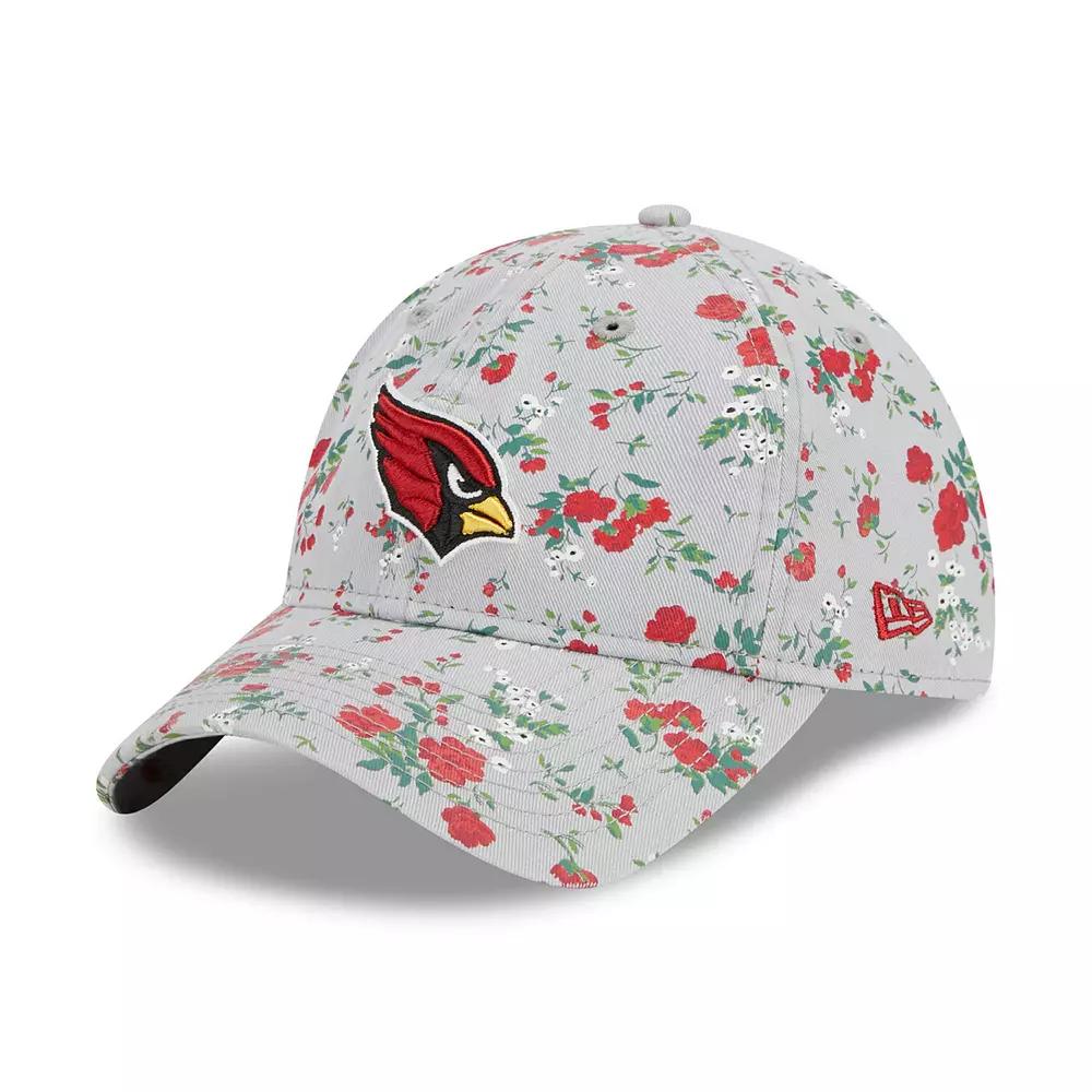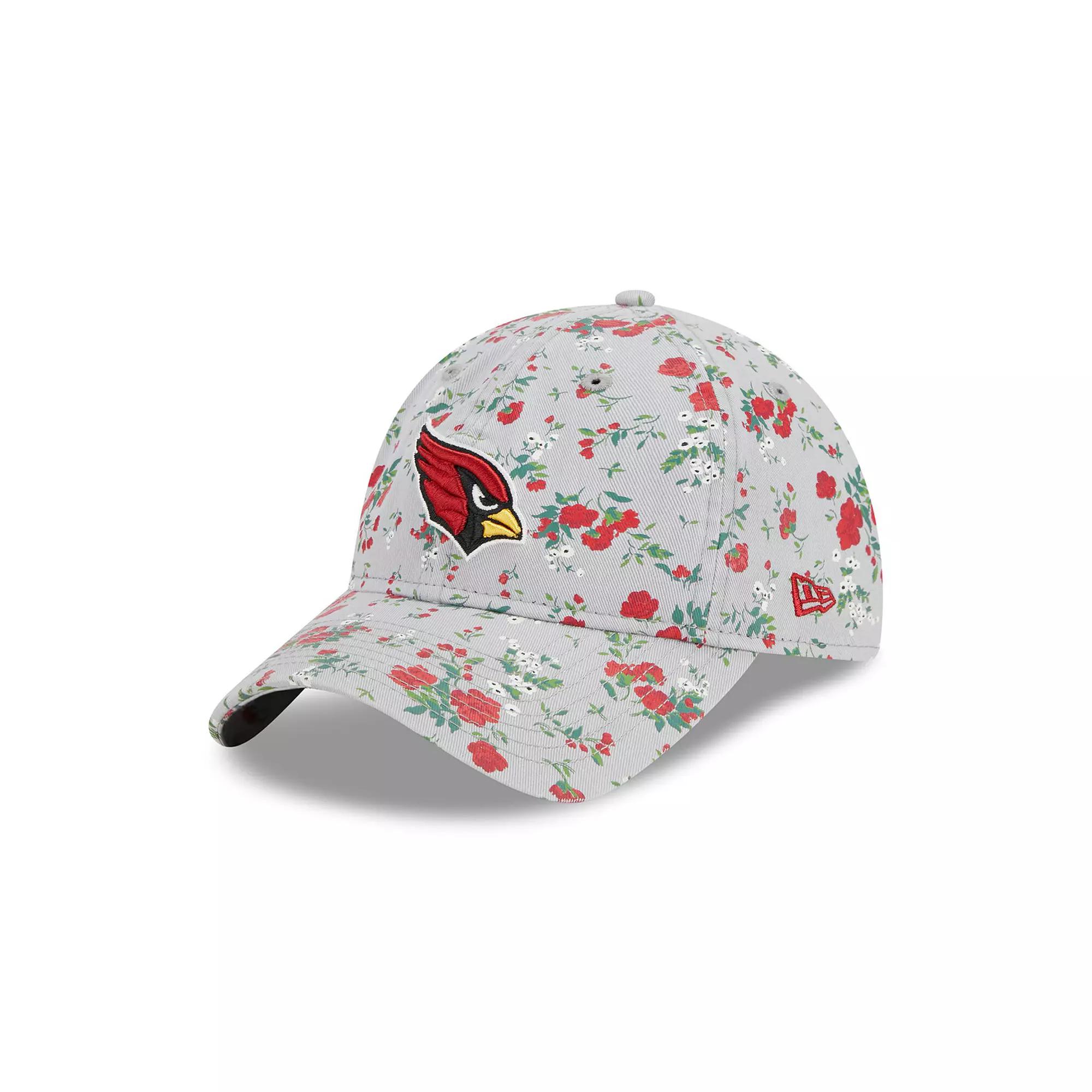 Show that your love for the Arizona Cardinals is in full bloom with this Bouquet 9TWENTY adjustable hat from New Era. It features a beautiful floral pattern printed all over the crown and bill and a distinct Arizona Cardinals logo embroidered on the front panels for a fan-forward look. The fabric strap closure also makes finding the right fit before heading out a cinch. One size fits most. Officially licensed. Imported. Material: 100% Cotton. Adjustable fabric strap with slide buckle. Embroidered graphics with raised details. Unstructured relaxed fit. Wipe clean with a damp cloth. Curved bill. Low Crown. Six panels with eyelets. Printed floral pattern. Brand: New Era. Color: Grey. Gender: female. Age Group: adult.