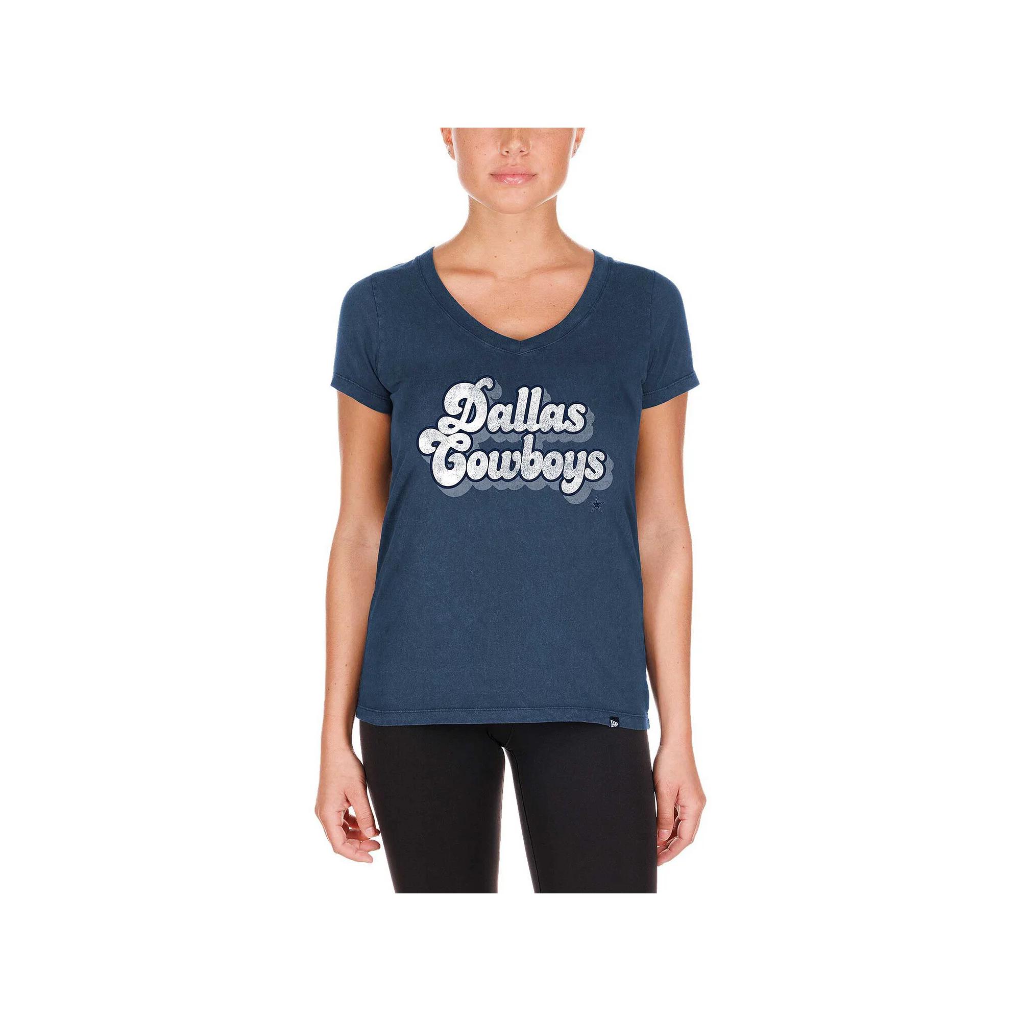 Elevate your wardrobe of Dallas Cowboys gear with this Enzyme Wash T-shirt from New Era. It prioritizes style with a low cut V-neck and distressed graphics on the front chest for a vintage look. The washed cotton fabric completes this Dallas Cowboys tee, making it a must-have addition to your in-season rotation.Elevate your wardrobe of Dallas Cowboys gear with this Enzyme Wash T-shirt from New Era. It prioritizes style with a low cut V-neck and distressed graphics on the front chest for a vintage look. The washed cotton fabric completes this Dallas Cowboys tee, making it a must-have addition to your in-season rotation.PRODUCT FEATURESV-neckMaterial: 100% CottonShort sleeveOfficially licensedBrand: New EraMachine wash, tumble dry lowDistressed screen print graphicsRounded droptail hemImported Color: Navy. Gender: female. Age Group: adult.