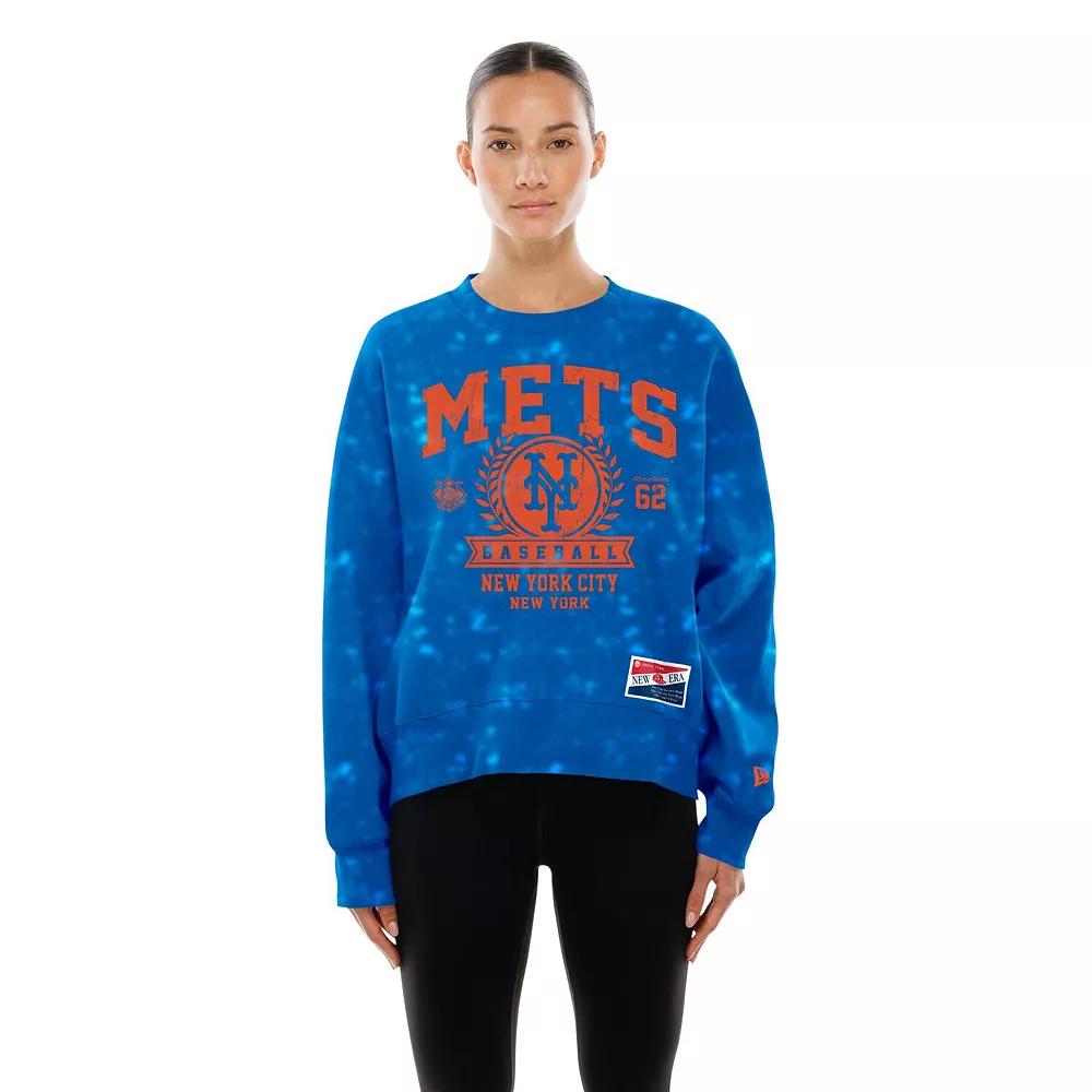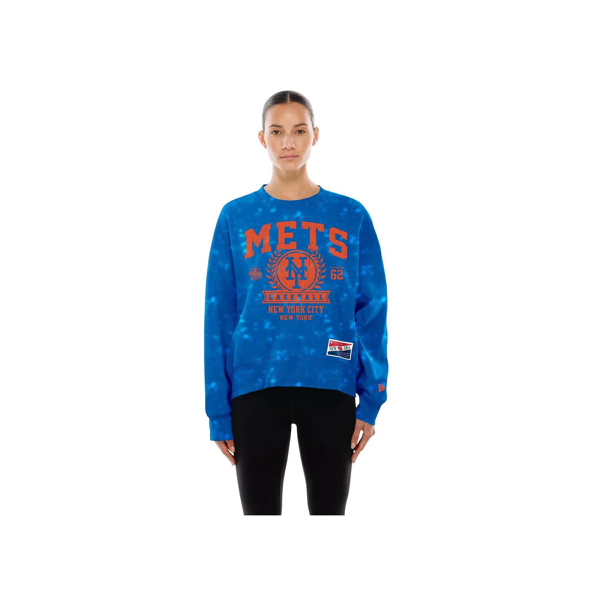Show your unwavering New York Mets pride with this Throwback Oversized Boxy Sweatshirt from New Era. The enzyme-washed fabric creates a vintage-inspired look, while the distressed screen print graphics evoke a sense of timeless team spirit. Blending cotton and polyester, this midweight sweatshirt with a soft fleece lining is ideal for moderate temperatures, making it the perfect way to stay cozy and stylish as you cheer on your team. Designed with large dropped shoulders, this piece ensures a comfortable, relaxed fit that allows you to represent the New York Mets with confidence and flair. Brand: New Era. Oversized fit with large dropped shoulders. Distressed screen print graphics for a vintage look. Material: 80% Cotton/20% Polyester - Body: 95% Cotton/5% Spandex - Rib. Pullover. Crew neck. Enzyme-washed fabric for a faded look. Imported. Midweight sweatshirt with a soft fleece lining suitable for moderate temperatures. Long sleeve. Officially licensed. Machine wash, tumble dry low. Size: XXL. Color: Blue. Gender: female. Age Group: adult.