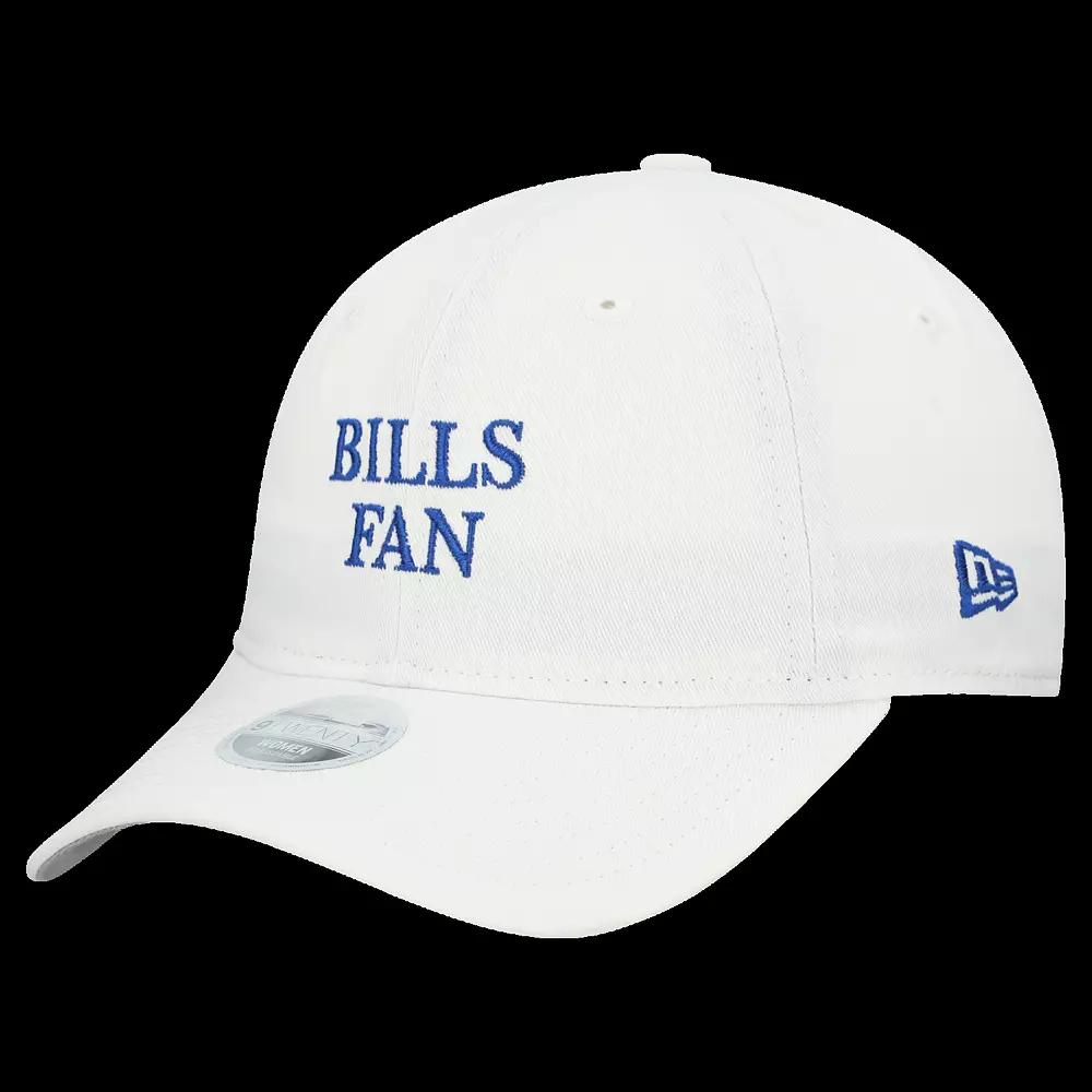 Show your enthusiasm for the Buffalo Bills when you sport this Team Fan 9TWENTY Adjustable Hat from New Era.Featuring a relaxed fit, this hat offers a comfortable, worn-in feel that sits comfortably low on your head. The embroidered graphics add a touch of team pride, making this Buffalo Bills hat the perfect accessory for any dedicated fan. Brand: New Era. Woven clip tag at back closure. Six panels with eyelets. Wipe clean with a damp cloth. Curved bill. Contrast-color undervisor. Unstructured relaxed fit. The 9TWENTY is New Era's relaxed fit adjustable silhouette, providing a well-worn look that sits low. Embroidered graphics. Material: 100% Cotton. Adjustable fabric strap with slide buckle. Imported. Officially licensed. Low Crown. One size fits most. Color: White. Gender: female. Age Group: adult.