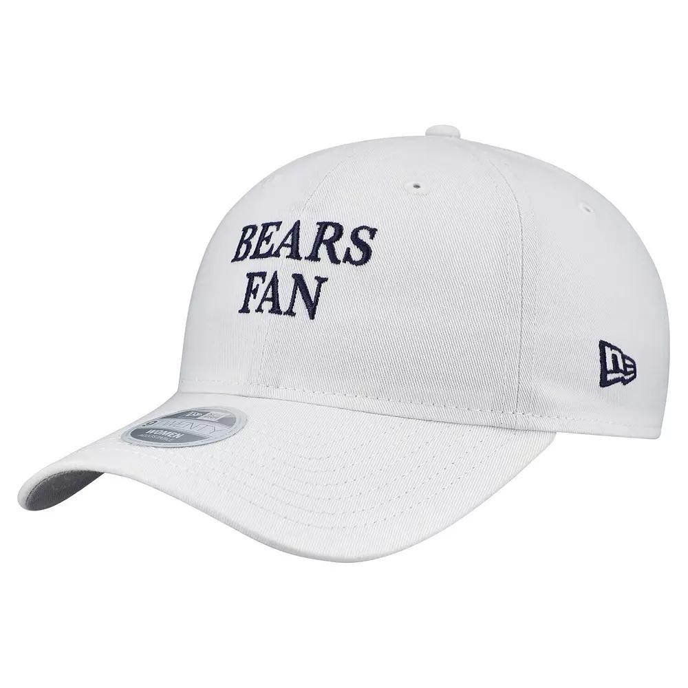 Show your enthusiasm for the Chicago Bears when you sport this Team Fan 9TWENTY Adjustable Hat from New Era.Featuring a relaxed fit, this hat offers a comfortable, worn-in feel that sits comfortably low on your head. The embroidered graphics add a touch of team pride, making this Chicago Bears hat the perfect accessory for any dedicated fan. Curved bill. Unstructured relaxed fit. Low Crown. The 9TWENTY is New Era's relaxed fit adjustable silhouette, providing a well-worn look that sits low. Brand: New Era. Imported. Wipe clean with a damp cloth. Embroidered graphics. Officially licensed. Six panels with eyelets. Adjustable fabric strap with slide buckle. Contrast-color undervisor. Woven clip tag at back closure. One size fits most. Material: 100% Cotton. Color: White. Gender: female. Age Group: adult.