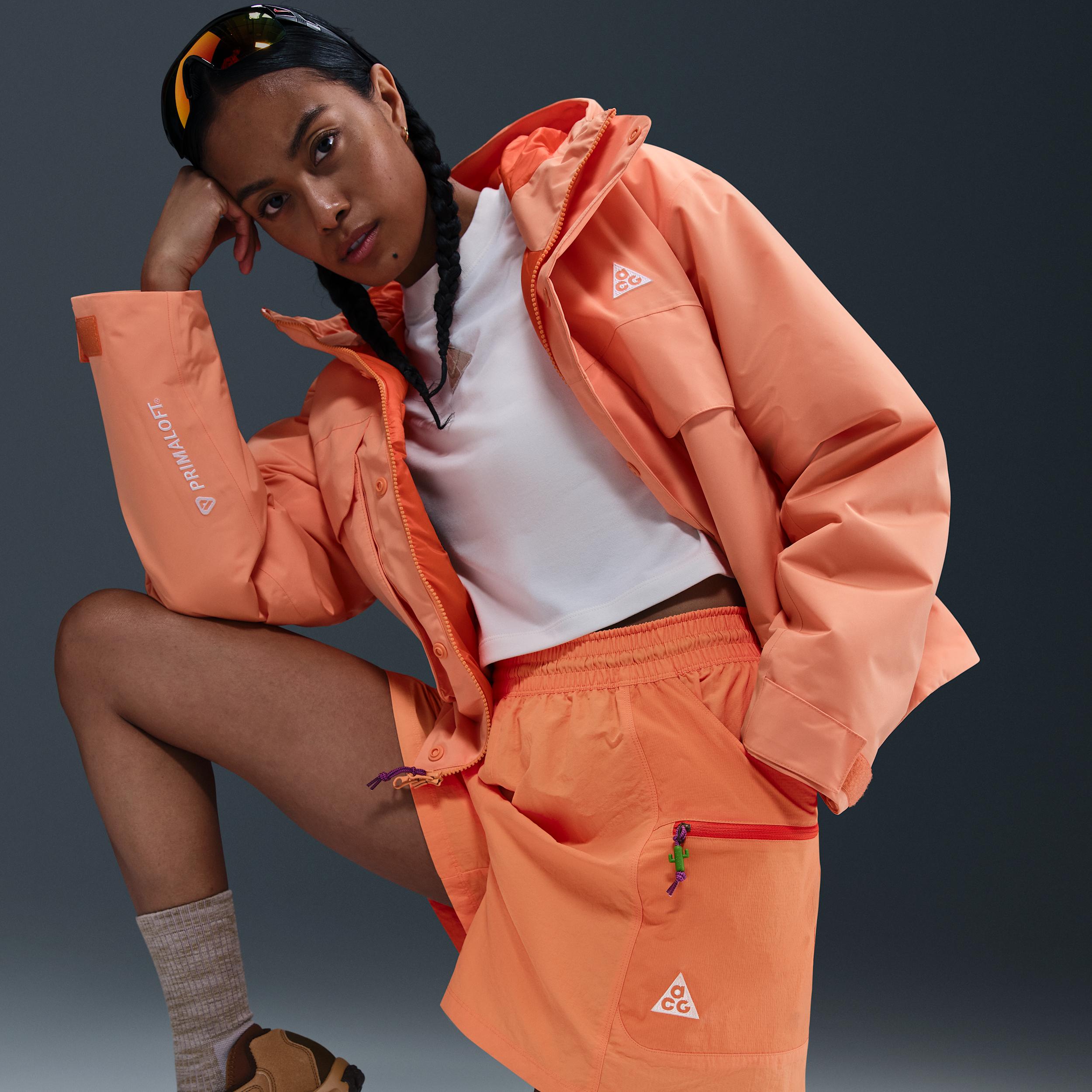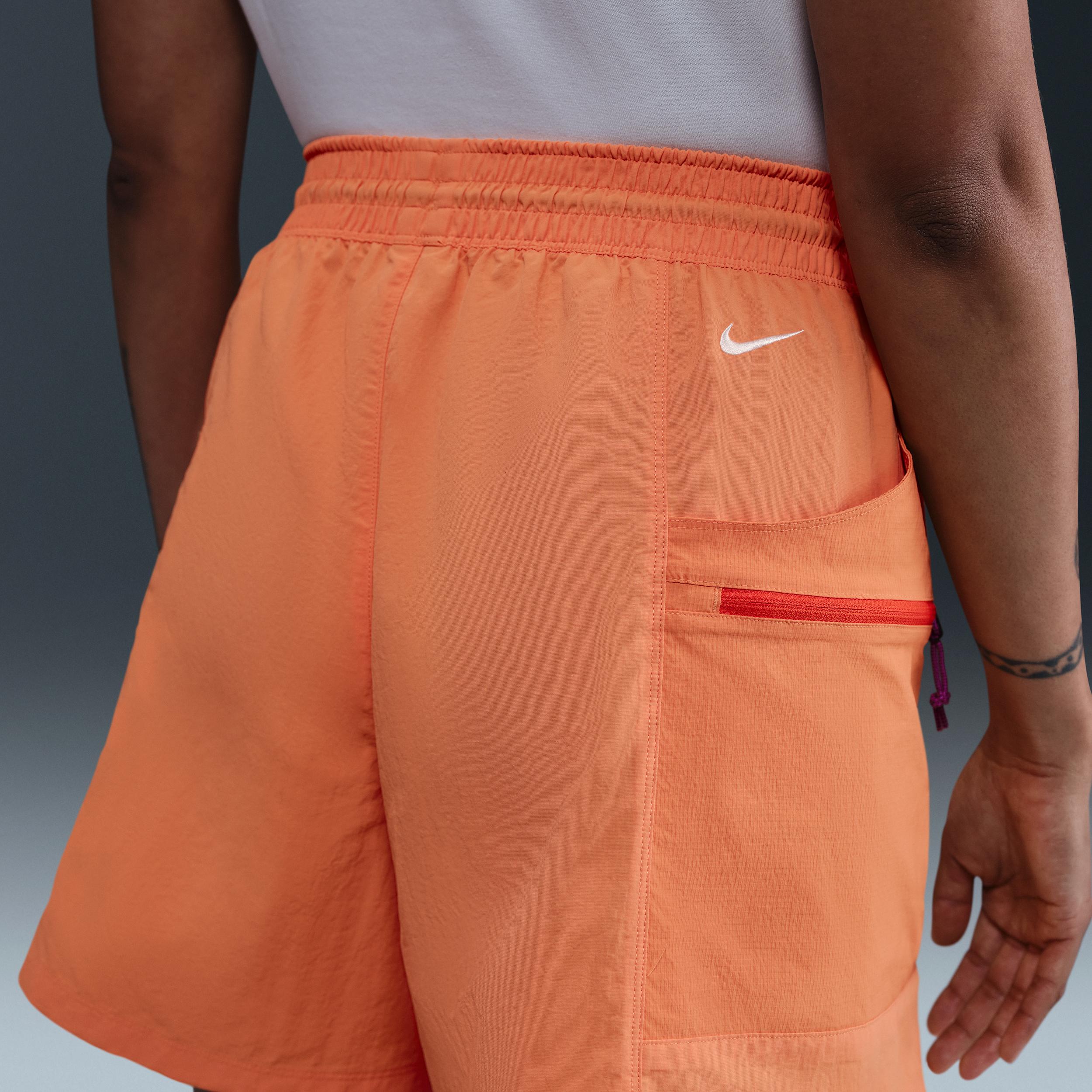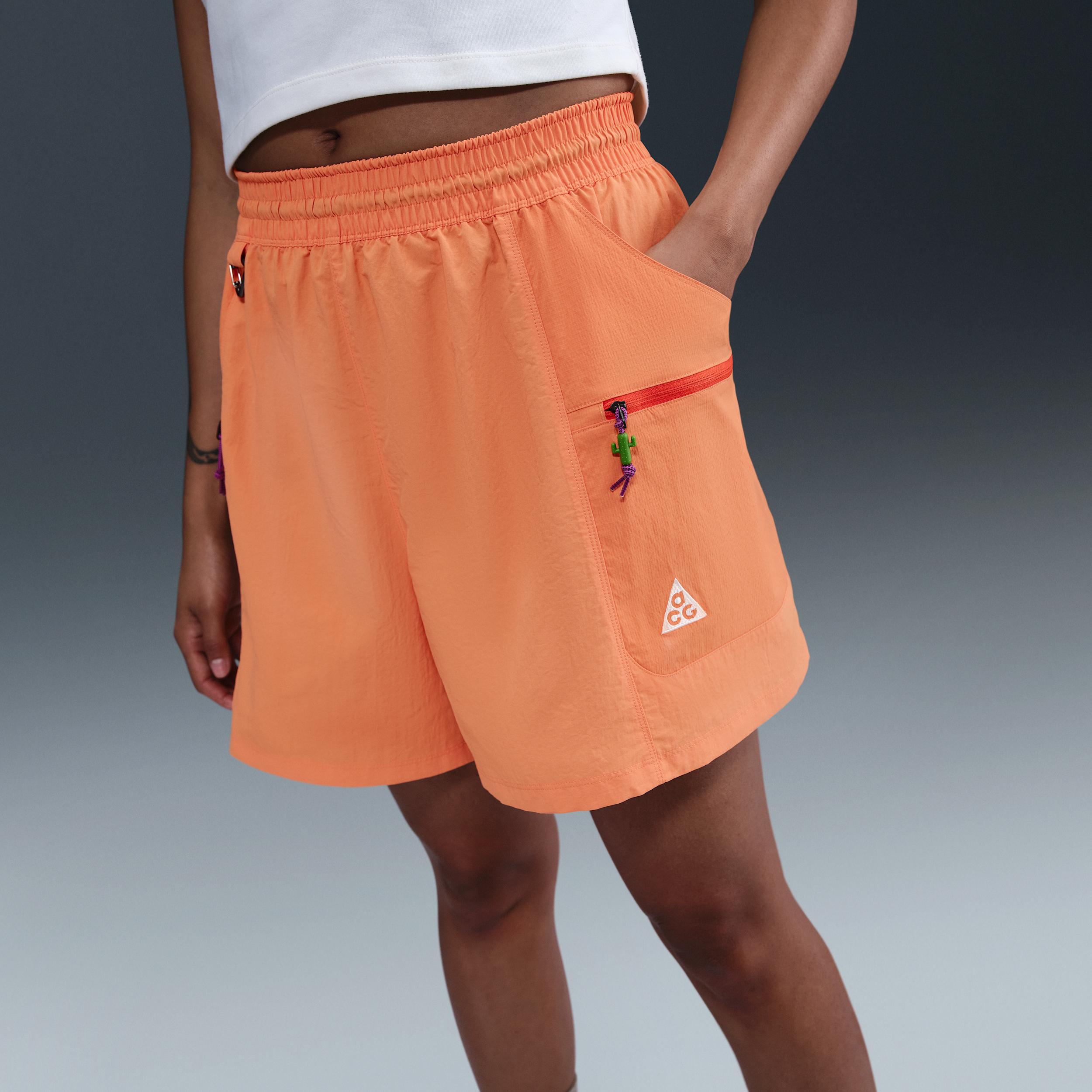 To test these shorts, our team took them on a canoe-camping trip in the West Texas desert. We wanted our gear to transition with ease between land and water, so we designed these with quick-drying mesh pockets and water-repellent body fabric. Inspired by the Cactus Death Bloom:To design and test these shorts, our team went canoe-camping in the Chihuahuan desert of West Texas. The name Death Bloom comes from the succulents that create beautiful and haunting flowers as their final, dying act. Lots of Storage:Layered drop-in pockets and zippered pockets give you a variety of places to keep your essentials. An ACG tribiner gives you a place to clip your keys so they stay secure while you adventure. [] Product Details:ACG cactus bead. Body:100% nylon. Overlays:92% nylon/8% spandex. Mesh:100% polyester. High-waisted fit. Elastic waistband. Machine wash. Imported. Style: HV6387; Color: Marrakesh/Safety Orange/Black/Summit White; Size: S; Gender: Female; Age Group: Adult | Nike ACG "Death Bloom" Women's Shorts in Orange, Size: Small | HV6387-833