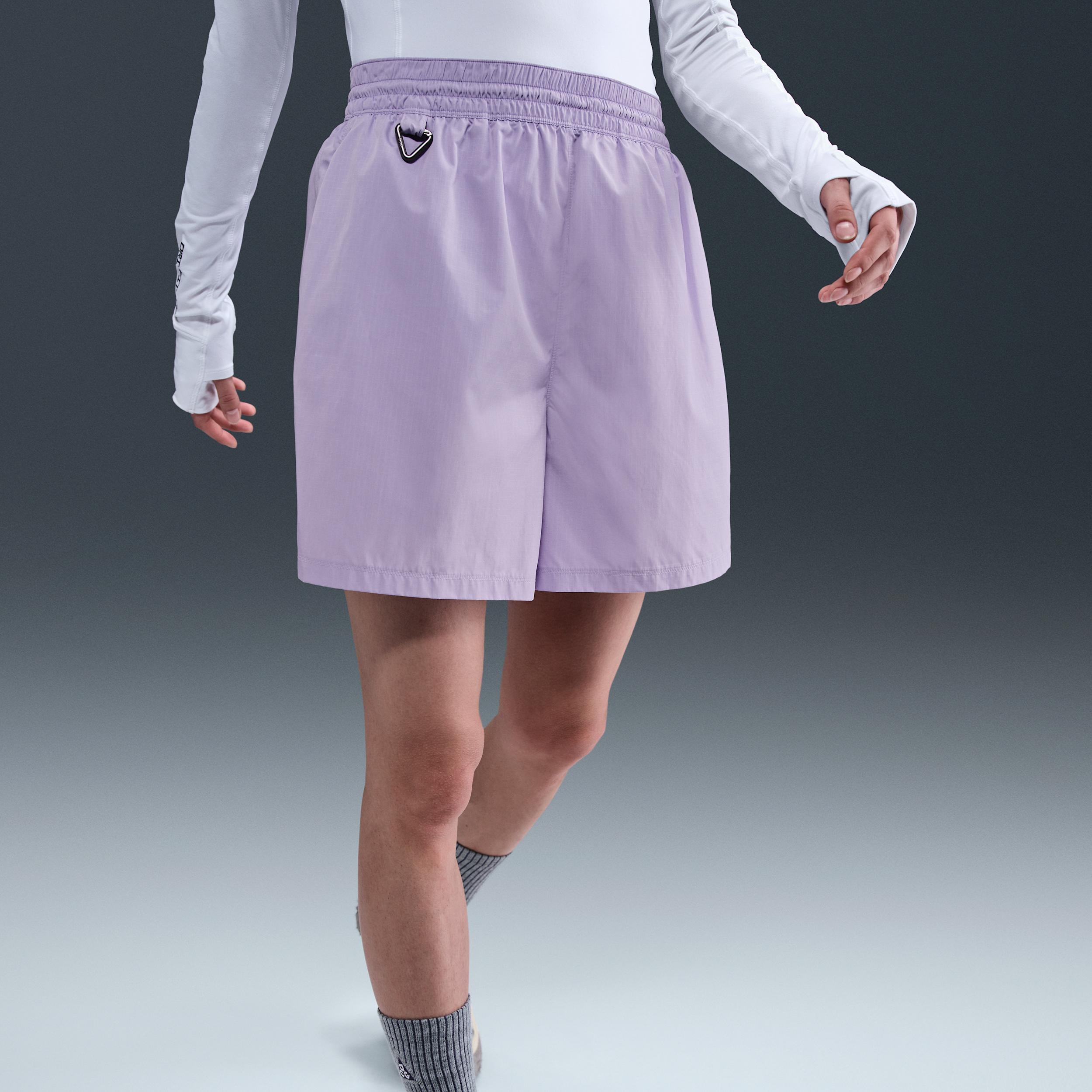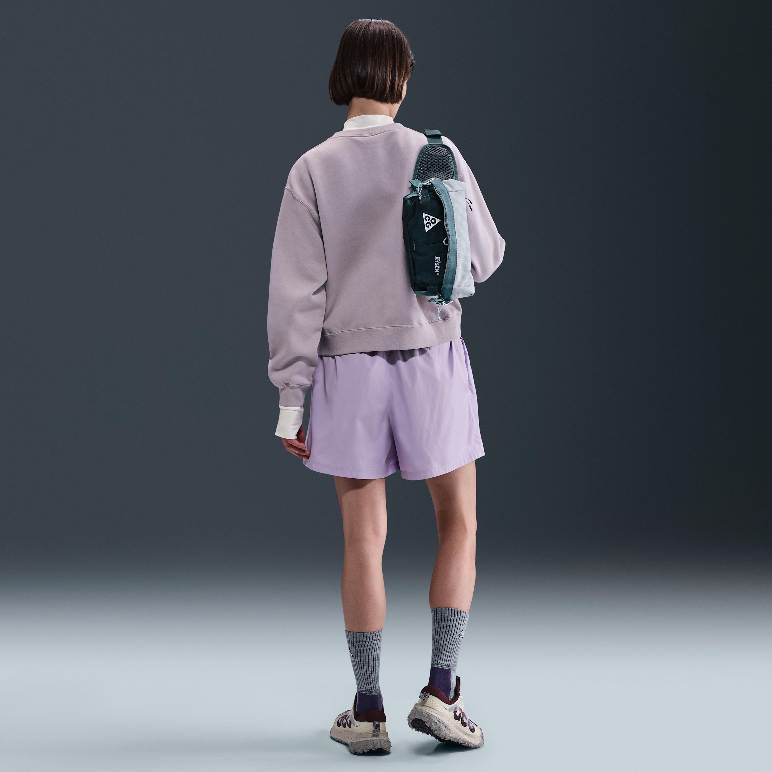 These roomy shorts are made with water-repellent technology to help keep you comfortable through all your adventures. Product Details:Body: 91% polyester/9% nylon. Pocket bags: 100% polyester. Triangle carabiner on right hip. Zippered pockets. Internal drawcord. Machine wash. Imported. Style: HJ0263; Color: Hydrangeas/Thunder Blue/Summit White; Size: S; Gender: Female; Age Group: Adult | Nike ACG Women's Repel Mid-Rise Ripstop Shorts in Purple, Size: Small | HJ0263-515