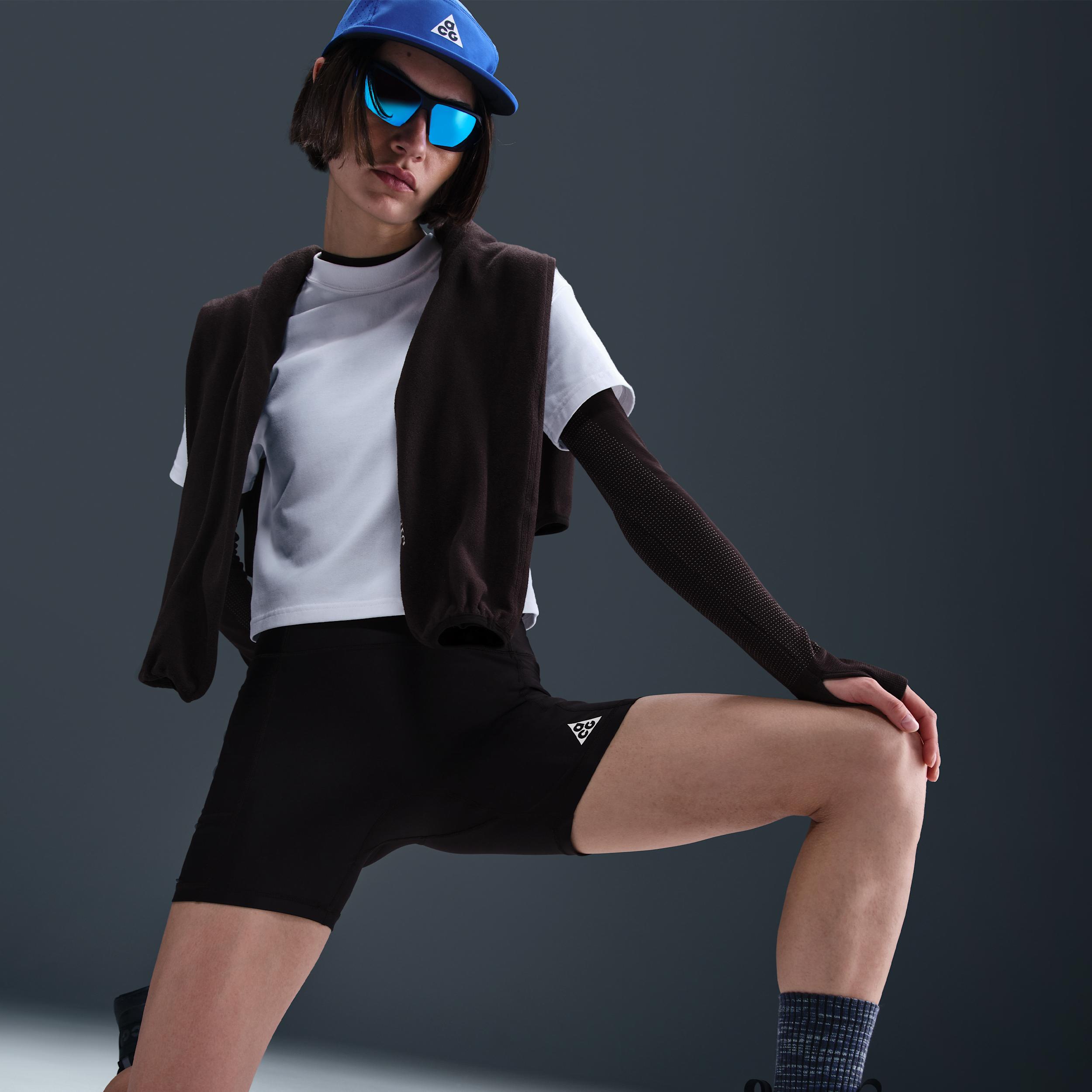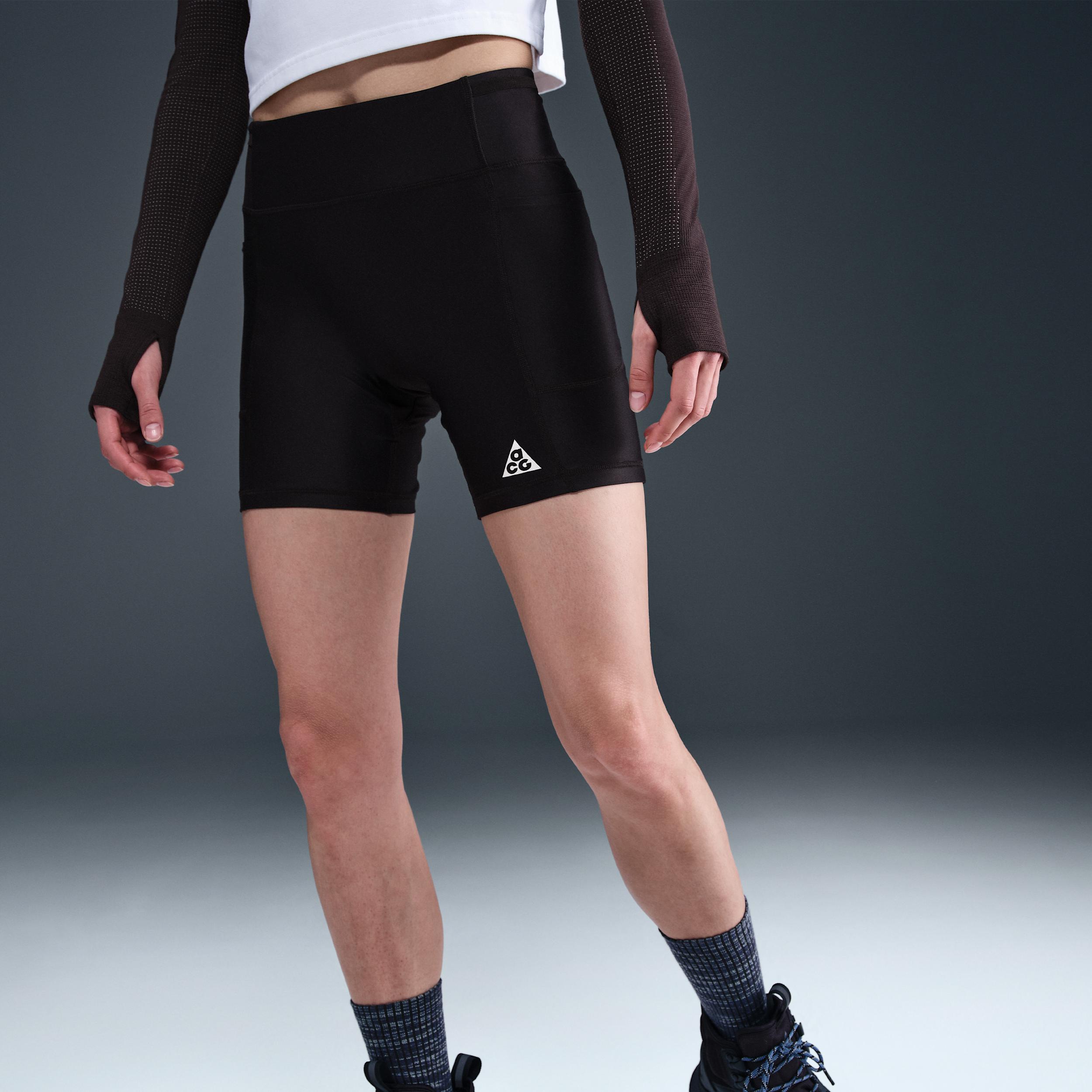 Make a splash in shorts designed to go from land to water with ease. To mimic their amphibious namesake, they have quick-drying tech built in to the fabric to help you stay dry and comfortable. Tested in Corcovado National Park, Costa Rica:We packed our bags and headed into Corcovado National Park for a 46-mile expedition to test these shorts. This beautiful Costa Rican rainforest is a tropical paradise of staggering natural beauty and biodiversity. It's also an area of sun, water and humidityâperfect for making sure these shorts are ready for you to explore boldly. Adventure-Ready Features:Nike Dri-FIT ADV technology combines moisture-wicking fabric with advanced engineering and features to help you stay dry and comfortable. An interior drawcord helps keep the fit feeling right and the zippered pocket lets you jump in and out of water without worrying about losing small items. Product Details:Body/Gusset lining: 78% nylon/22% spandex. Mesh: 82% polyester/18% spandex. Daisy chain binding at waist. Silicone ACG logo on left thigh. Machine wash. Imported. Style: HJ0259; Color: Black/Black/Summit White; Size: S; Gender: Female; Age Group: Adult | Nike ACG "Tree Frog" Women's Dri-FIT ADV Mid-Rise 6" Shorts in Black, Size: Small | HJ0259-010