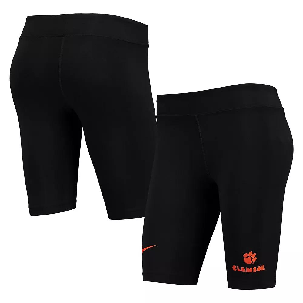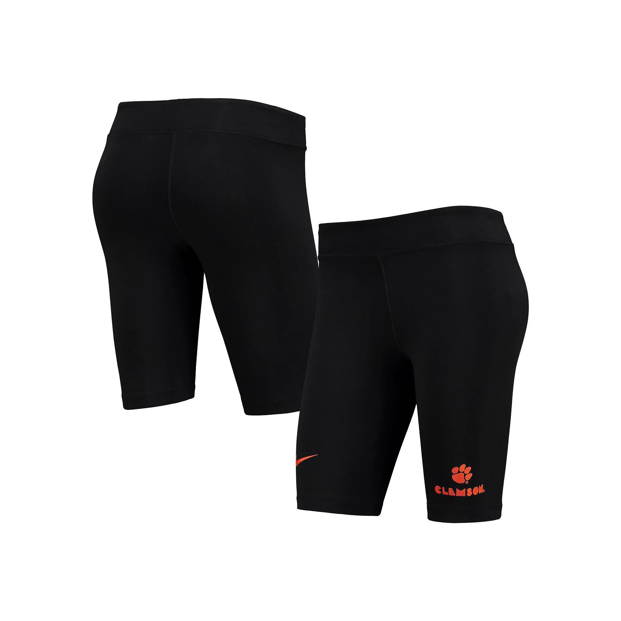 Everyday Clemson Tigers wear is an easy choice with these Essential Bike shorts from Nike in your wardrobe. They feature a mid-rise waistband that provides a flexible fit and understated Clemson Tigers graphics. Plus, tri-blend material creates a soft, stretchy feel for added comfort.Everyday Clemson Tigers wear is an easy choice with these Essential Bike shorts from Nike in your wardrobe. They feature a mid-rise waistband that provides a flexible fit and understated Clemson Tigers graphics. Plus, tri-blend material creates a soft, stretchy feel for added comfort.PRODUCT FEATURESBrand: NikeMachine wash with garment inside out, tumble dry lowImportedHeat-sealed graphicsInseam on size S measures approx. 10Material: 61% Cotton/33% Polyester/6% SpandexTight fitElastic, mid-rise waistbandOfficially licensed Size: XL. Color: CLM BLACK. Gender: female. Age Group: adult.