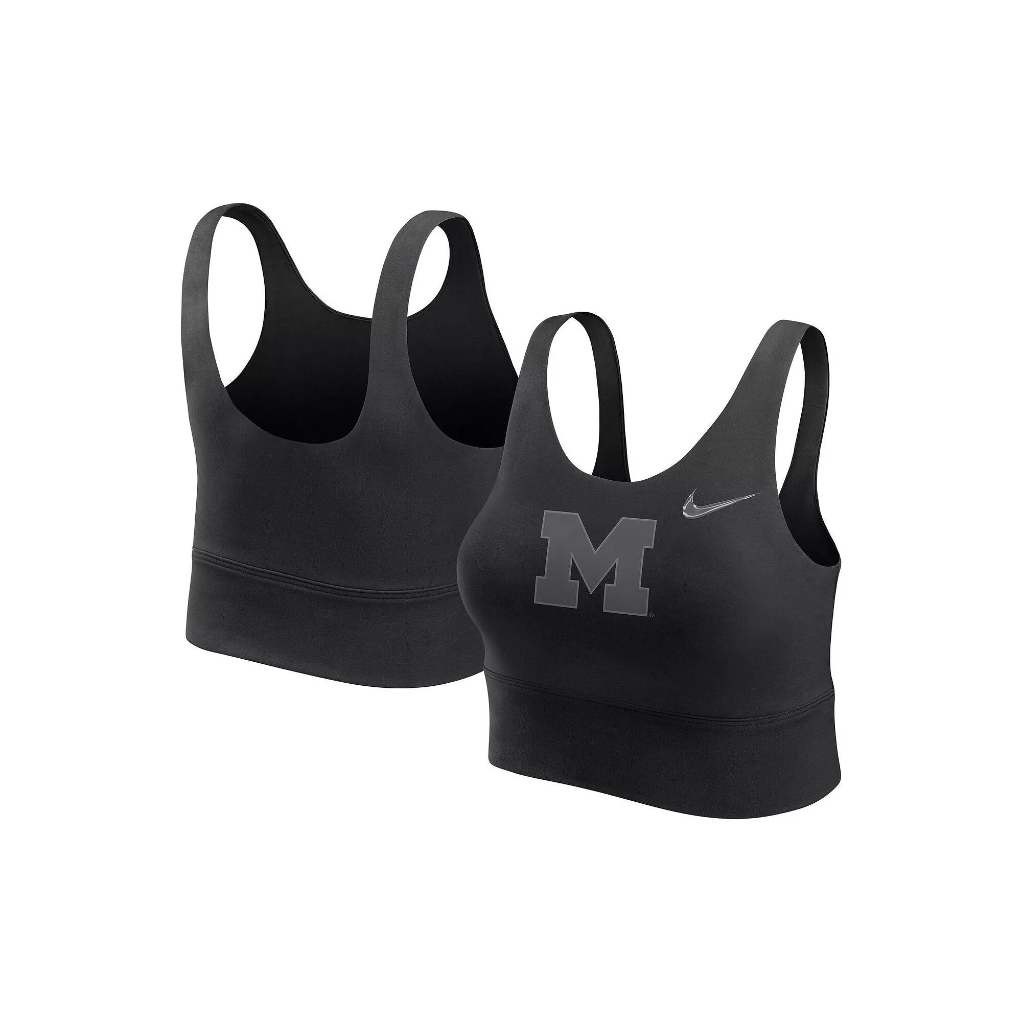 Show out for your Michigan Wolverines with this comfortable and stylish Performance Longline Sports Bra from Nike. Heat-sealed silicone team graphics on the front let you rep the Michigan Wolverines with pride. Made with lightweight, breathable fabric and Nike Dri-FIT technology, this bra helps you stay cool, dry and comfortable whether you're working out or cheering on your team. Officially licensed. Heat-sealed silicone team logo at front. Brand: Nike. Machine wash, tumble dry low. Material: 78% Nylon/22% Spandex. Light support gives you a gentle hold with plenty of freedom that's great for low-impact workouts or all-day comfort. Dri-FIT technology wicks away moisture. Imported. Color: Black. Gender: female. Age Group: adult. Material: COTTON.
